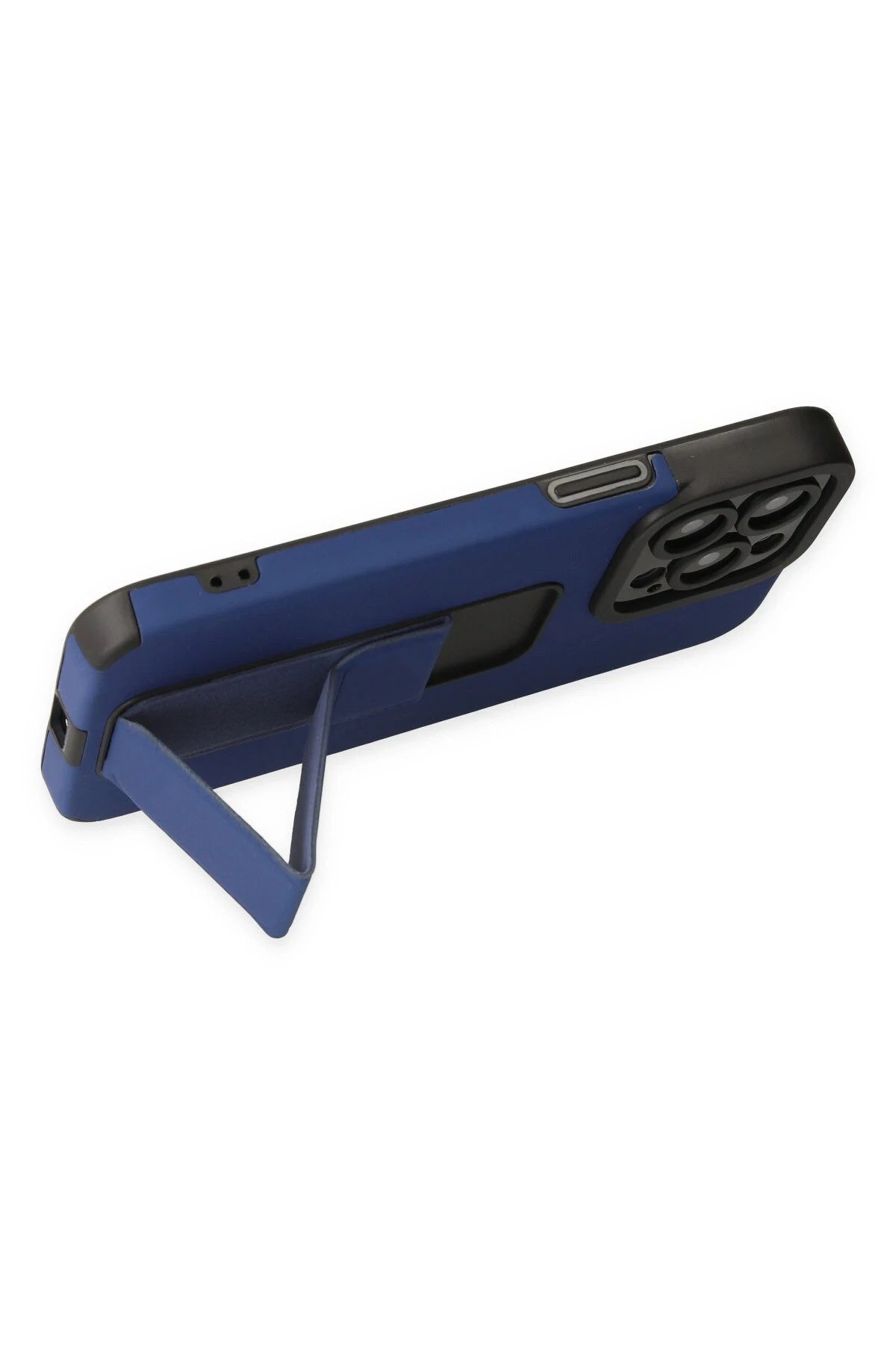 iPhone 14 Pro Kılıf Mega Standlı Silikon - Mavi-(5796)