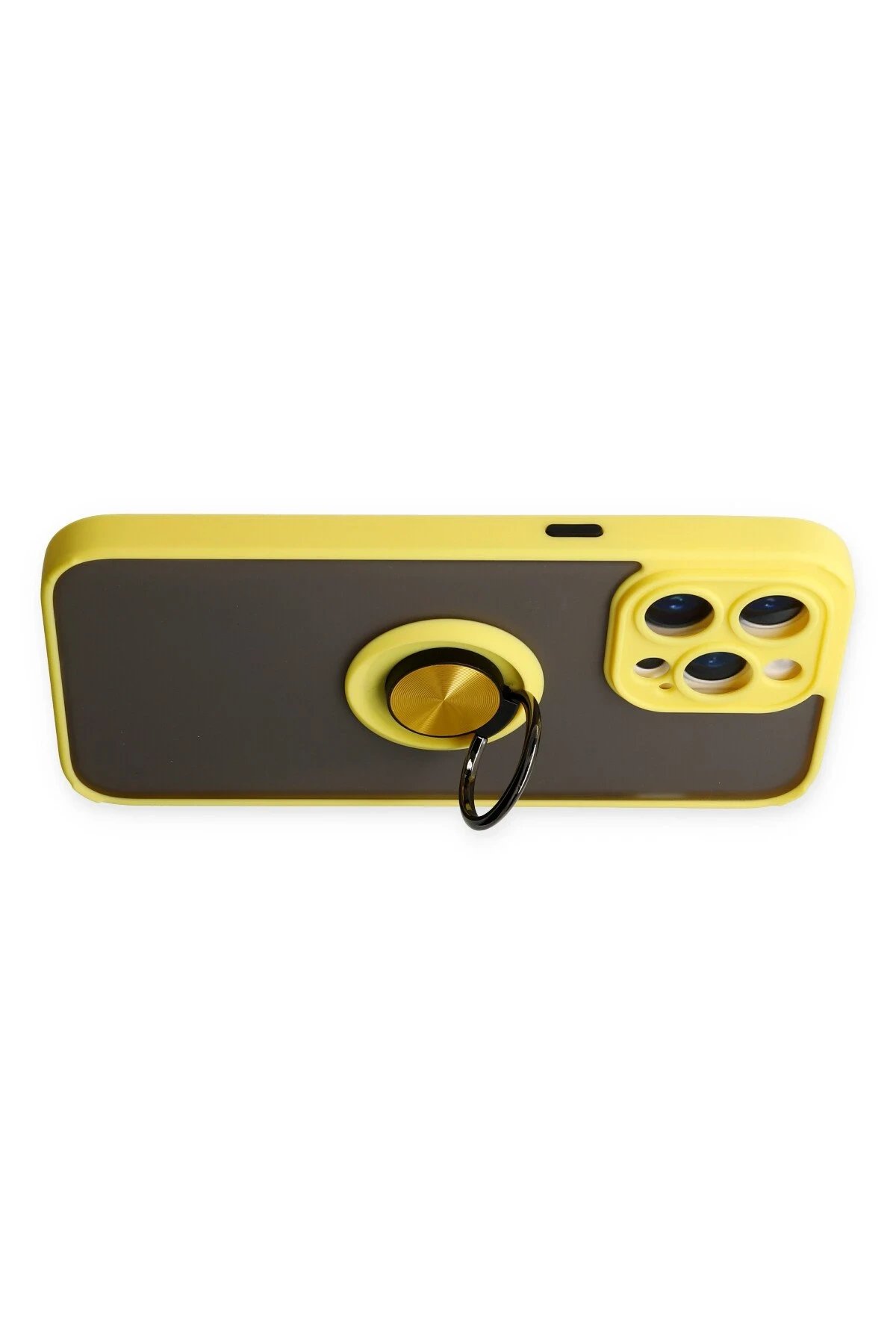 iPhone 14 Pro Kılıf Montreal Yüzüklü Silikon Kapak - Sarı-(5796)