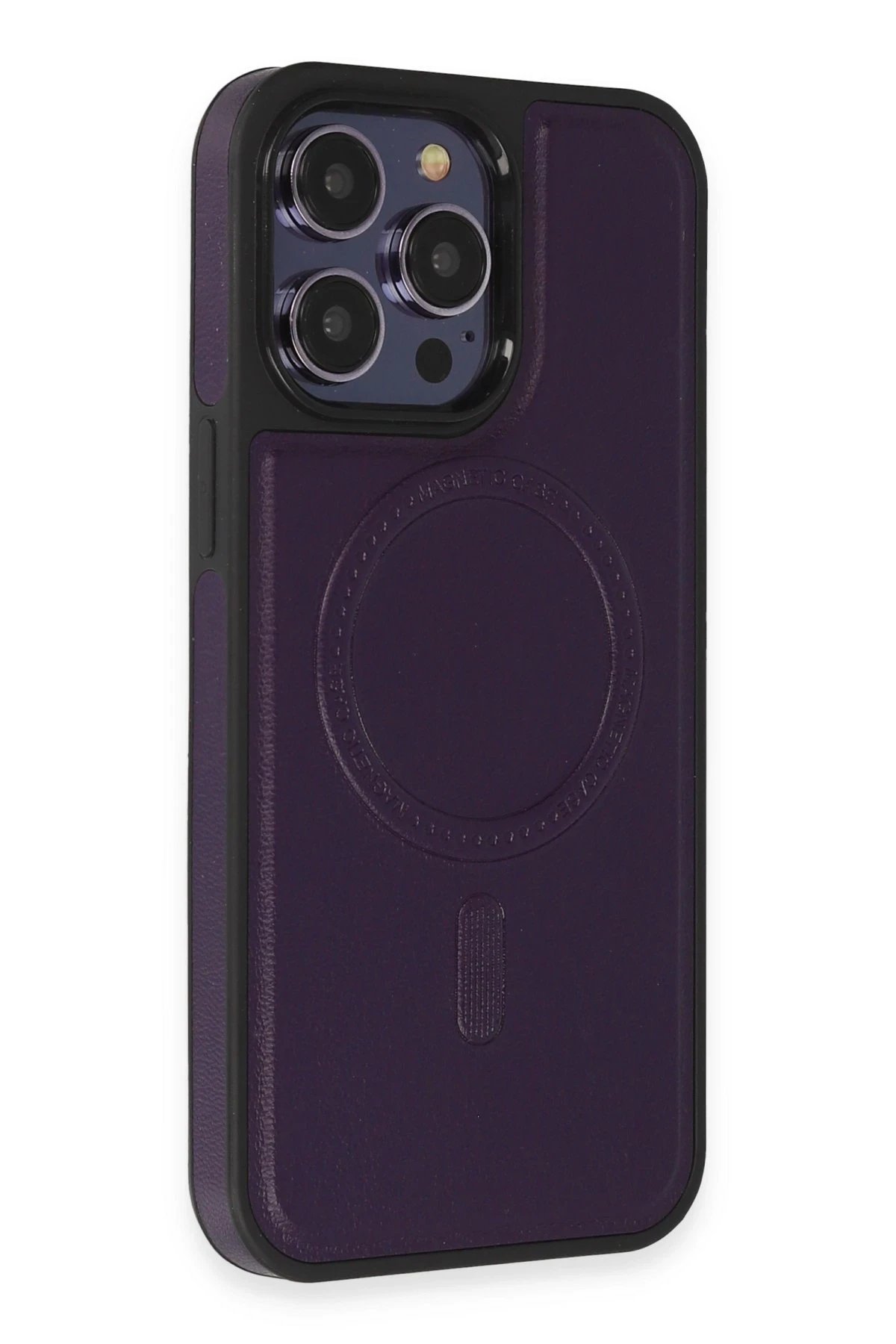 iPhone 14 Pro Kılıf Ozzi Magsafe Deri Kapak - Derin Mor-(5796)