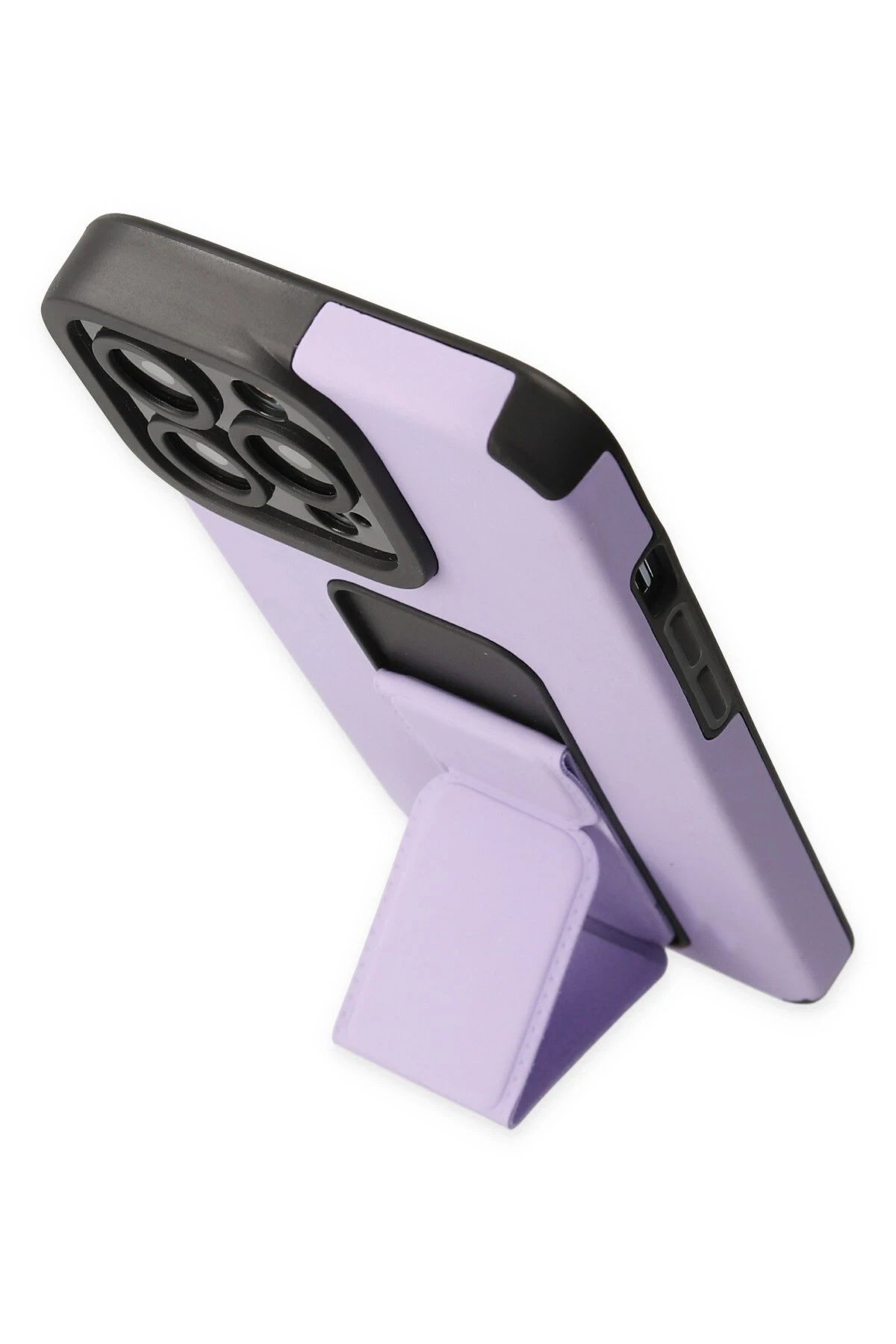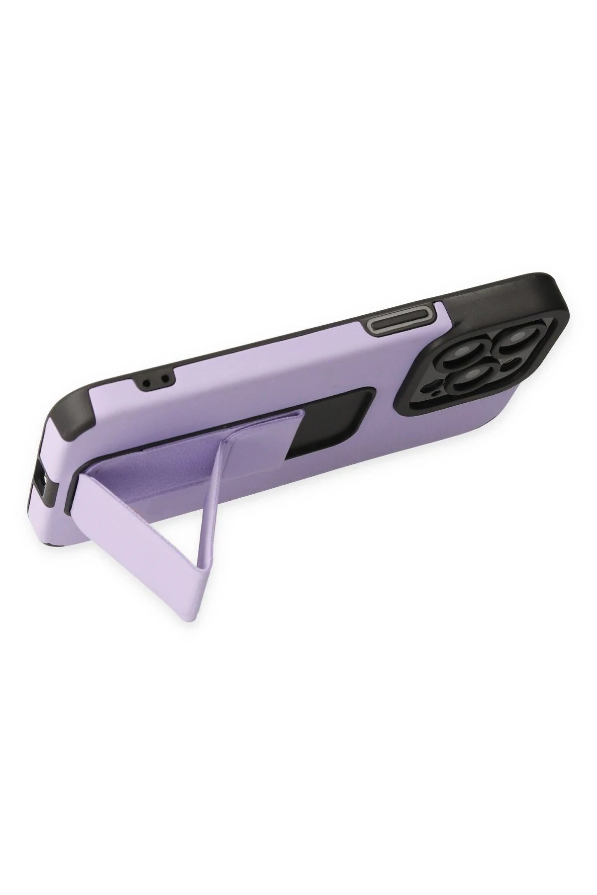 iPhone 14 Pro Max Kılıf Mega Standlı Silikon - Lila-(5796)