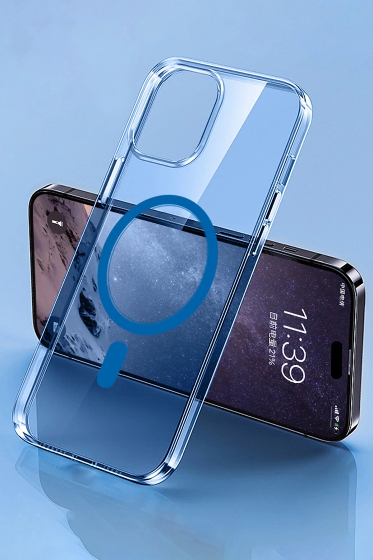 iPhone 14 Pro Max Kılıf Tron Şeffaf Magsafe Kapak - Mavi-(5796)