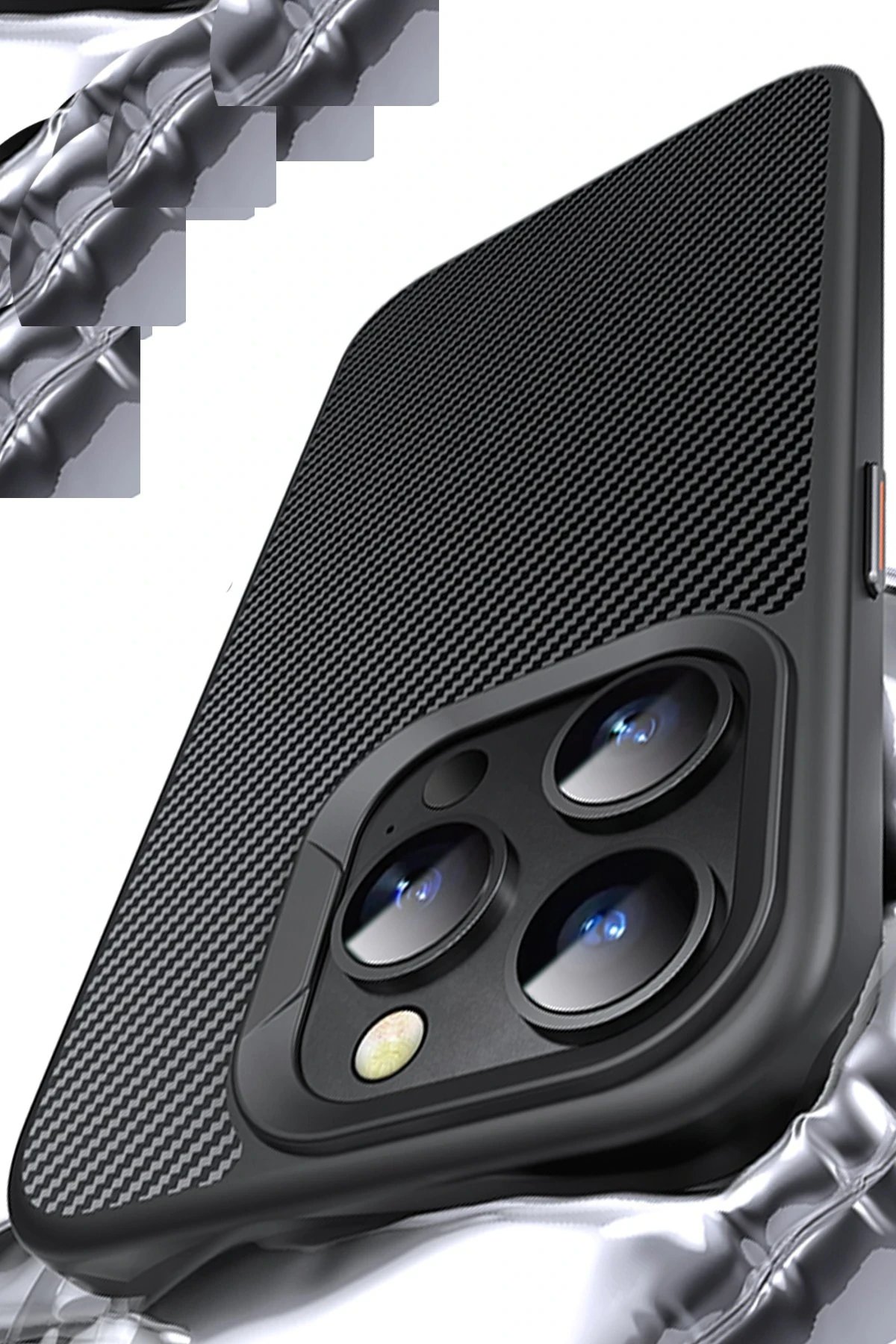 iPhone 15 Pro Dart Karbon Magsafe Kapak - Siyah-(5796)