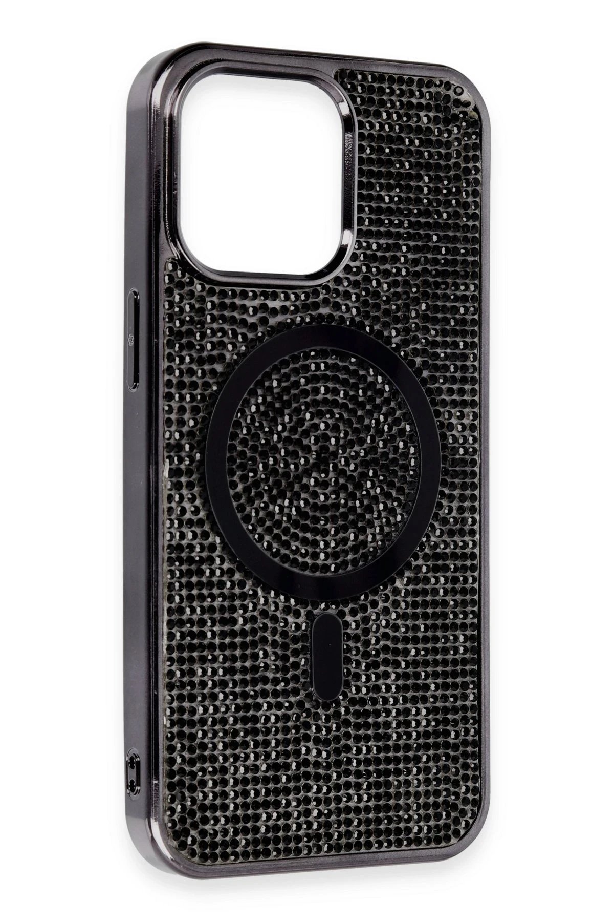 iPhone 15 Pro Kılıf Diamond Magsafe Kapak - Siyah-(5796)