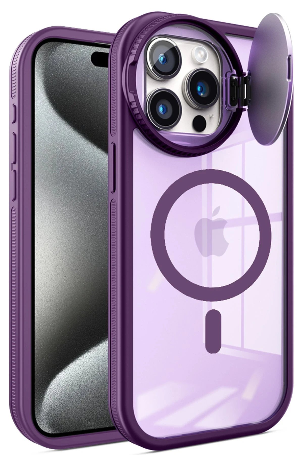 iPhone 15 Pro Kılıf Teleskop Lens Magsafe Silikon Kapak - Derin Mor-(5796)