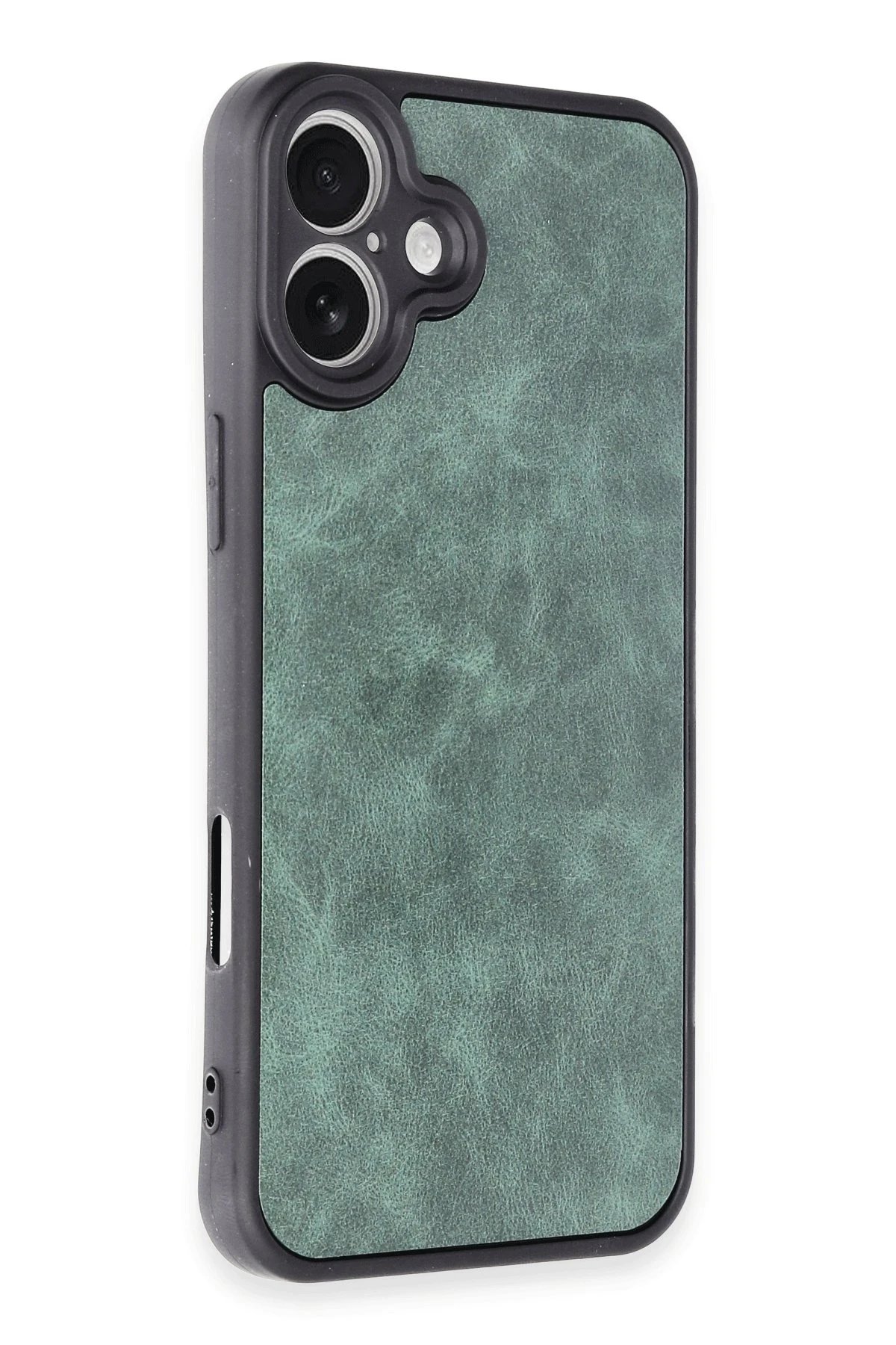 iPhone 16 Plus Kılıf Aras Deri Kapak - Koyu Yeşil-(5796)
