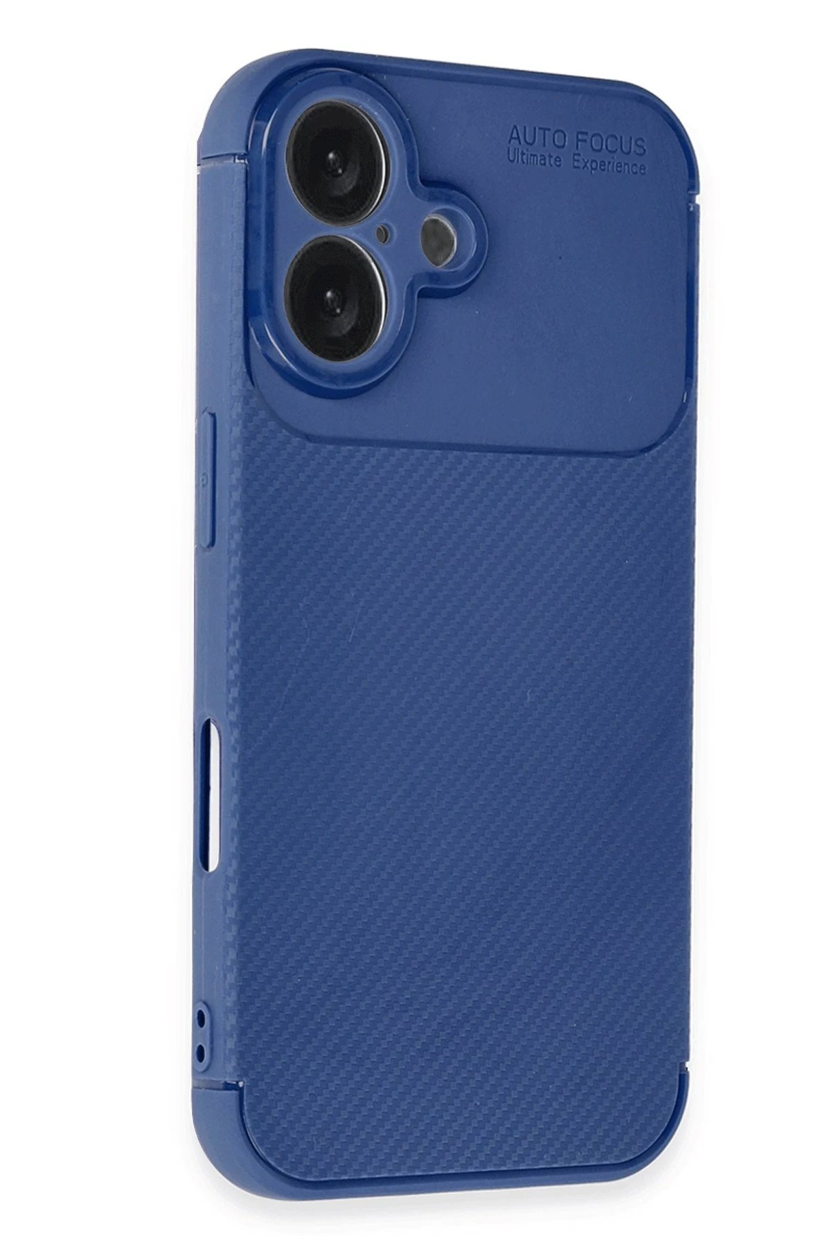 iPhone 16 Plus Kılıf Auto Focus Karbon Kapak - Lacivert-(5796)
