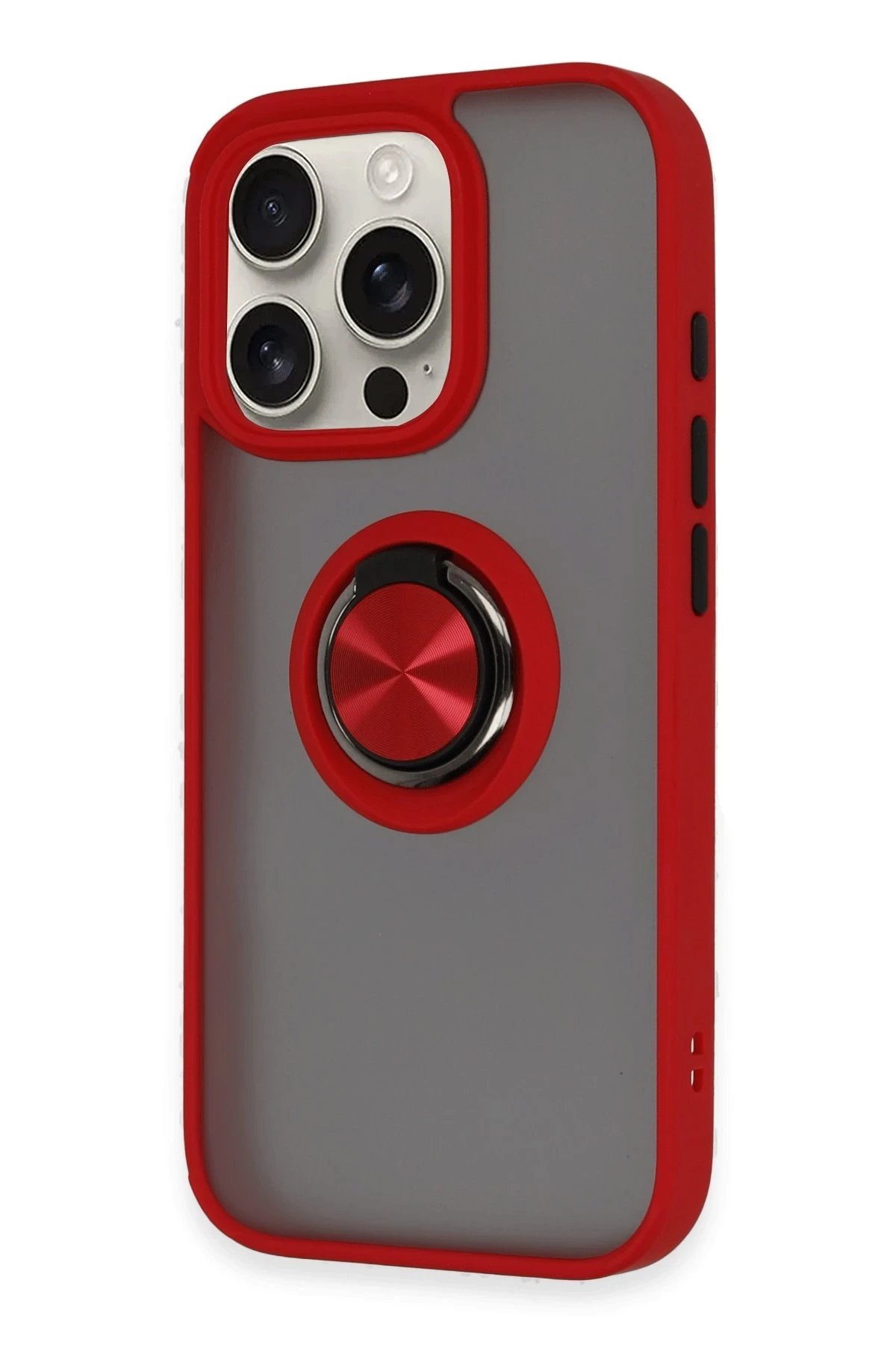 iPhone 16 Pro Kılıf Montreal Yüzüklü Silikon Kapak - Kırmızı-(5796)