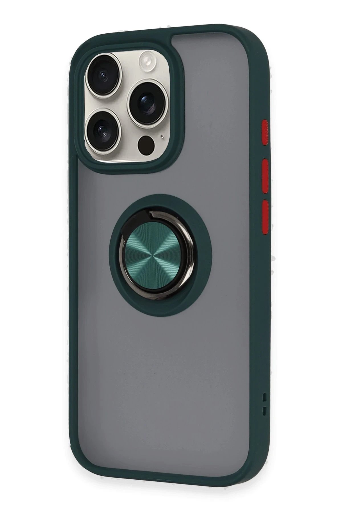 iPhone 16 Pro Kılıf Montreal Yüzüklü Silikon Kapak - Yeşil-(5796)
