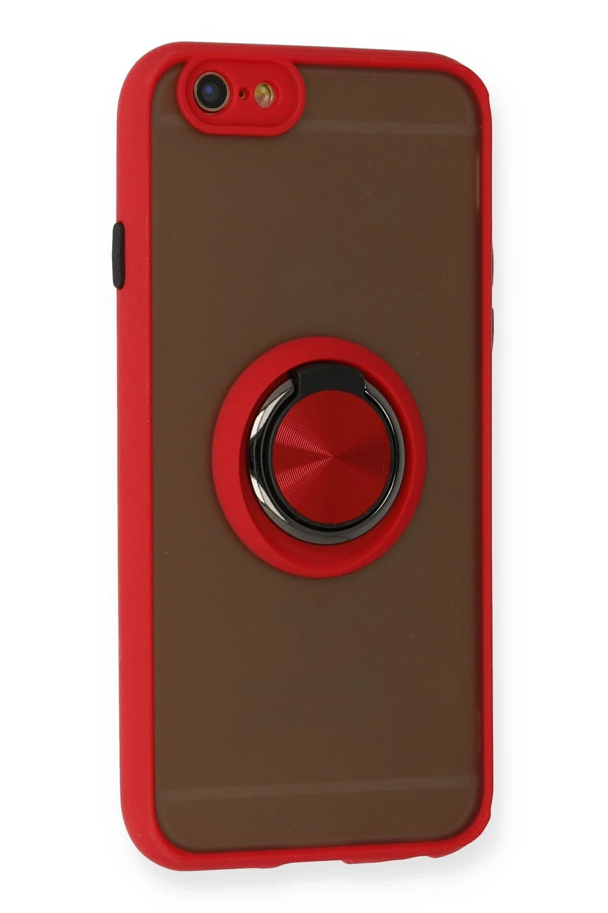iPhone 6 Kılıf Montreal Yüzüklü Silikon Kapak - Kırmızı-(5796)