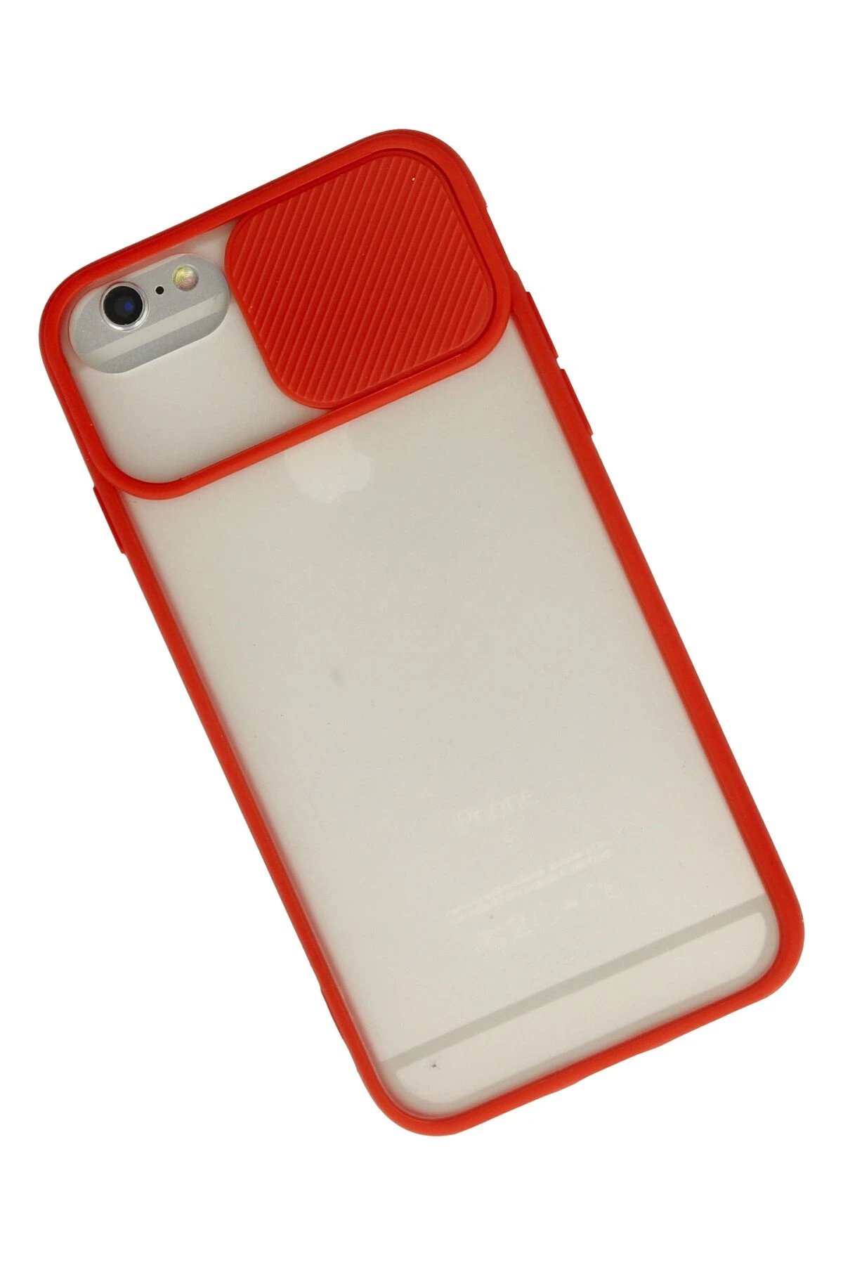 iPhone 6 Kılıf Palm Buzlu Kamera Sürgülü Silikon - Kırmızı-(5796)