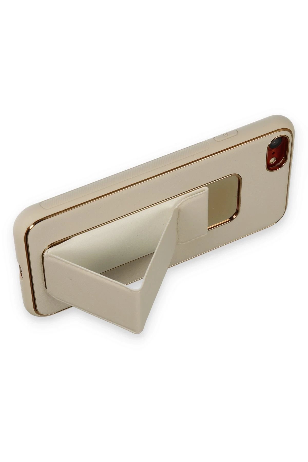 iPhone 7 Kılıf Coco Deri Standlı Kapak - Gold-(5796)