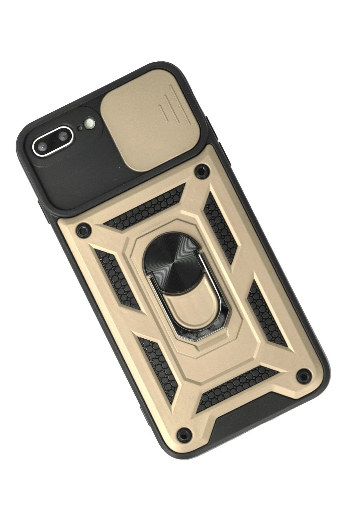 iPhone 7 Plus Kılıf Pars Lens Yüzüklü Silikon - Gold-(5796)