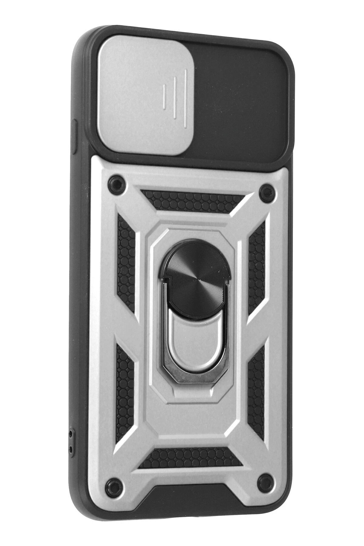 iPhone 7 Plus Kılıf Pars Lens Yüzüklü Silikon - Gümüş-(5796)
