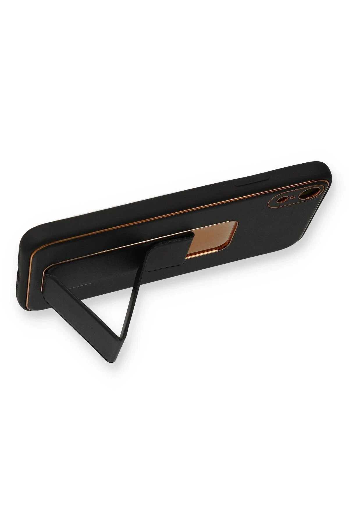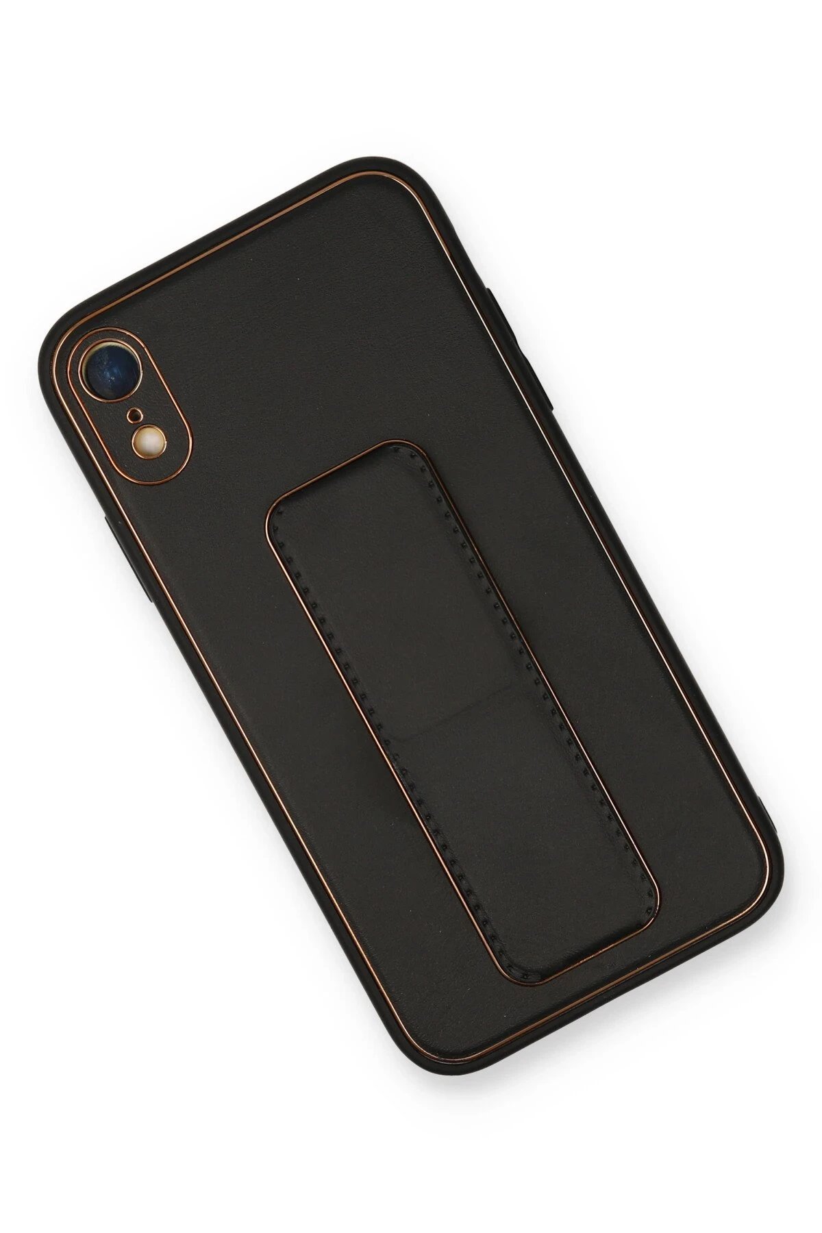 iPhone XR Kılıf Coco Deri Standlı Kapak - Siyah-(5796)