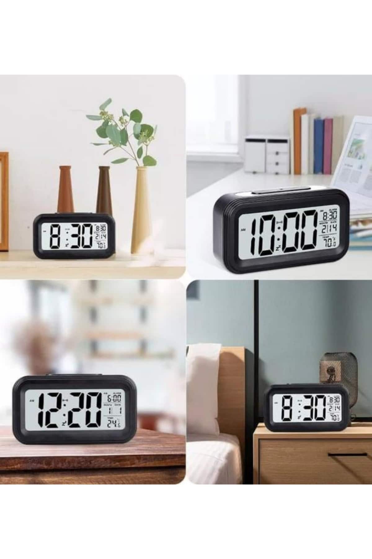 Işıklı Dereceli Masa Ofis Saati Alarmlı Termometre Takvim Çalar Saat