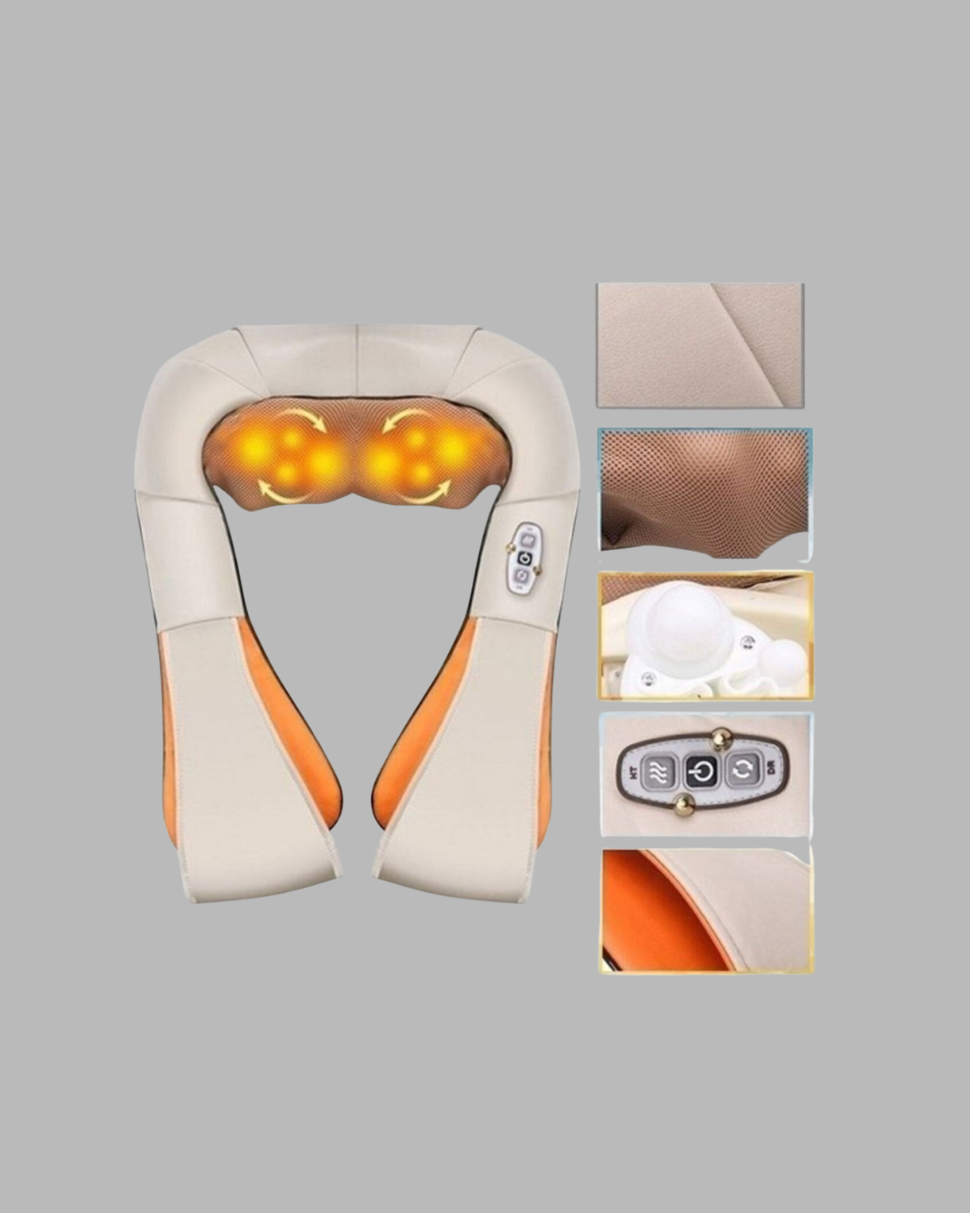 Gelişmiş teknoloji kullanılarak tasarlanan bu masaj cihazı, yoğurma hareketi ve ısıyı otomatik olarak yönlendirerek kaslarınıza ayarlanabilir bir terapi uygular. Boyun, omuz, kulunç ve sırt bölgelerine rahatlıkla uygulanabilir. Masaj sırasında yayılan sıcaklık, hem kasların gevşemesini sağlar hem de lenf ve kan dolaşımını destekler; böylelikle dokular arası besin maddesi iletimi ve atıkların uzaklaştırılması hızlanır. Fizyoterapi etkisine yakın bir masaj deneyimi yaşatır. Masaj başlıklarının üç boyutlu üniform yapısı, müdahale gerektirmeyen bir cihaz sunar. Kullanımı rahat ve güvenli olan cihaz aşırı ısınma koruma sistemiyle tasarlanmıştır; belli bir sıcaklığa eriştiğinde devreye girerek cihazı koruma moduna alır. PU deri ve nefes alan kumaş kaplamasıyla hem hijyenik hem uzun ömürlüdür. Boyun şalı formunda yapılandığı için cihaz vücudunuzu sararak daha etkili bir masaj deneyimi sağlar.
