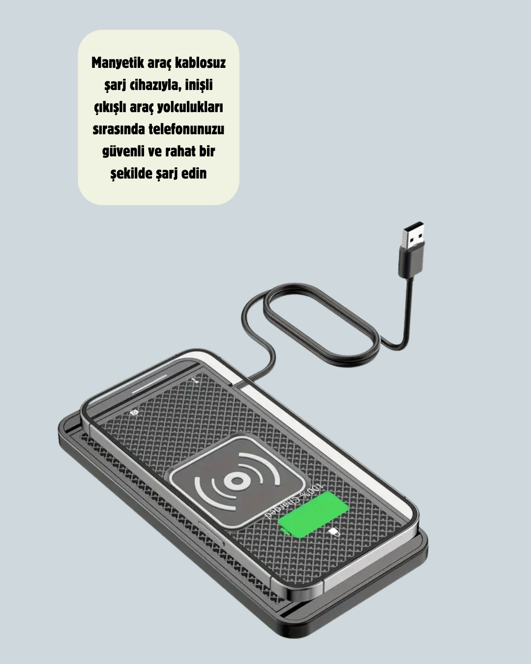 Kablosuz Manyetik Araç Şarj Pedi – Hızlı, Güvenli, Isınma Korumalı Tasarım