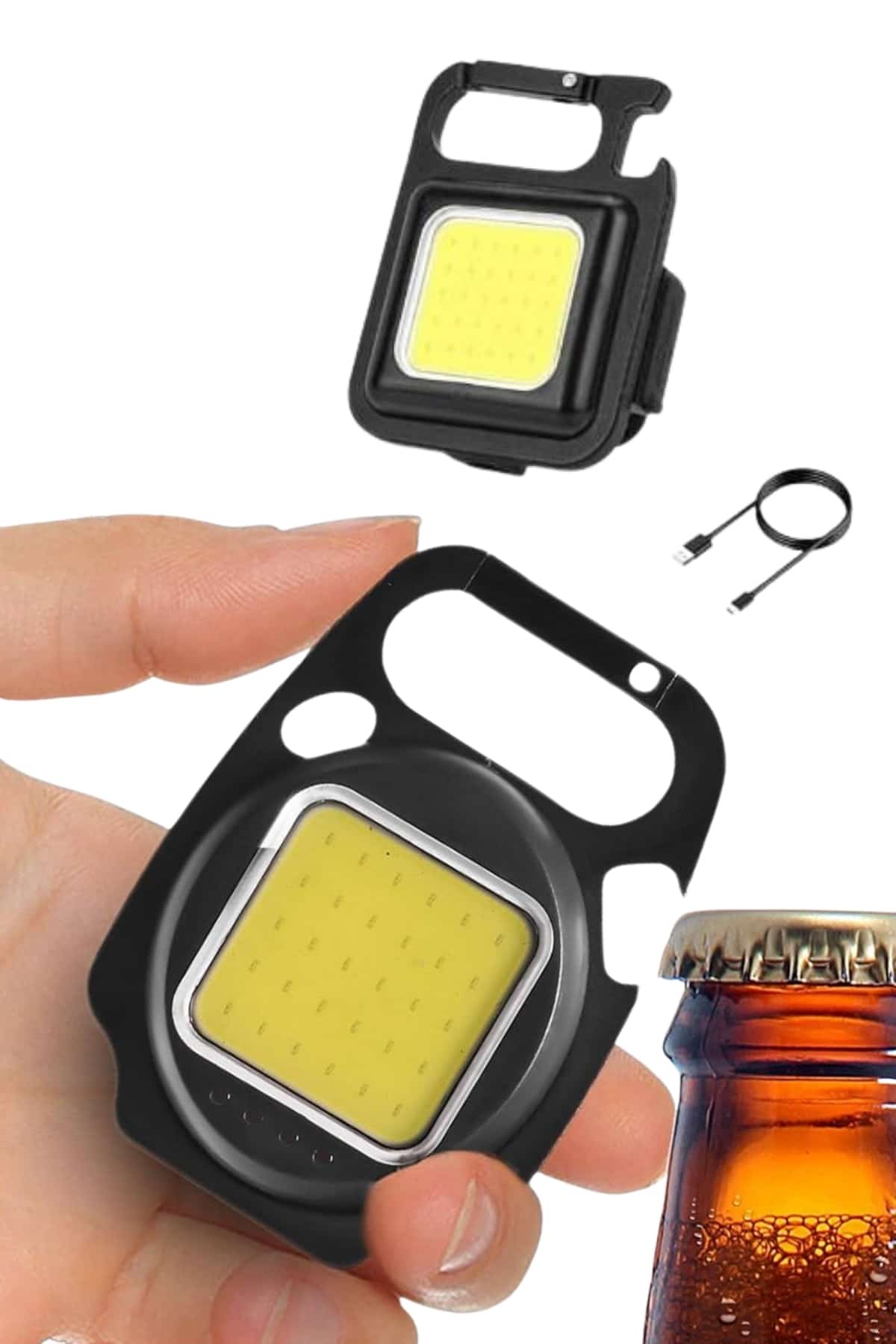Bu kompakt ve kullanışlı mini LED fener, güçlü COB ışık kaynağı sayesinde etkileyici bir parlaklık sunarak karanlık ortamlarda net görüş sağlar. Küçük boyutuna rağmen yüksek performans sunan bu anahtarlık tipi fener, cebinizde, çantanızda ya da anahtarlığınıza takılı şekilde kolayca taşınabilir. Üç farklı aydınlatma modu (yüksek, düşük ve flaş) sayesinde farklı ihtiyaçlara uyum sağlarken, arkasında bulunan mıknatıslı yüzey ve entegre askı aparatı sayesinde pratik kullanım imkânı sunar. Şarj edilebilir bataryası, USB Type-C girişiyle kolaylıkla şarj edilebilir ve uzun süreli kullanım vadeder. Su sıçramalarına ve darbelere karşı dayanıklı yapısıyla dış mekan aktiviteleri, acil durumlar, kamp, yürüyüş, tamir işleri gibi birçok alanda güvenilir bir yardımcıdır. Şişe açacağı fonksiyonuyla günlük kullanımda da işlevselliğini artırır. Dayanıklı gövdesi ve hafif yapısı ile her an yanınızda taşımak isteyeceğiniz çok yönlü bir aydınlatma çözümüdür.