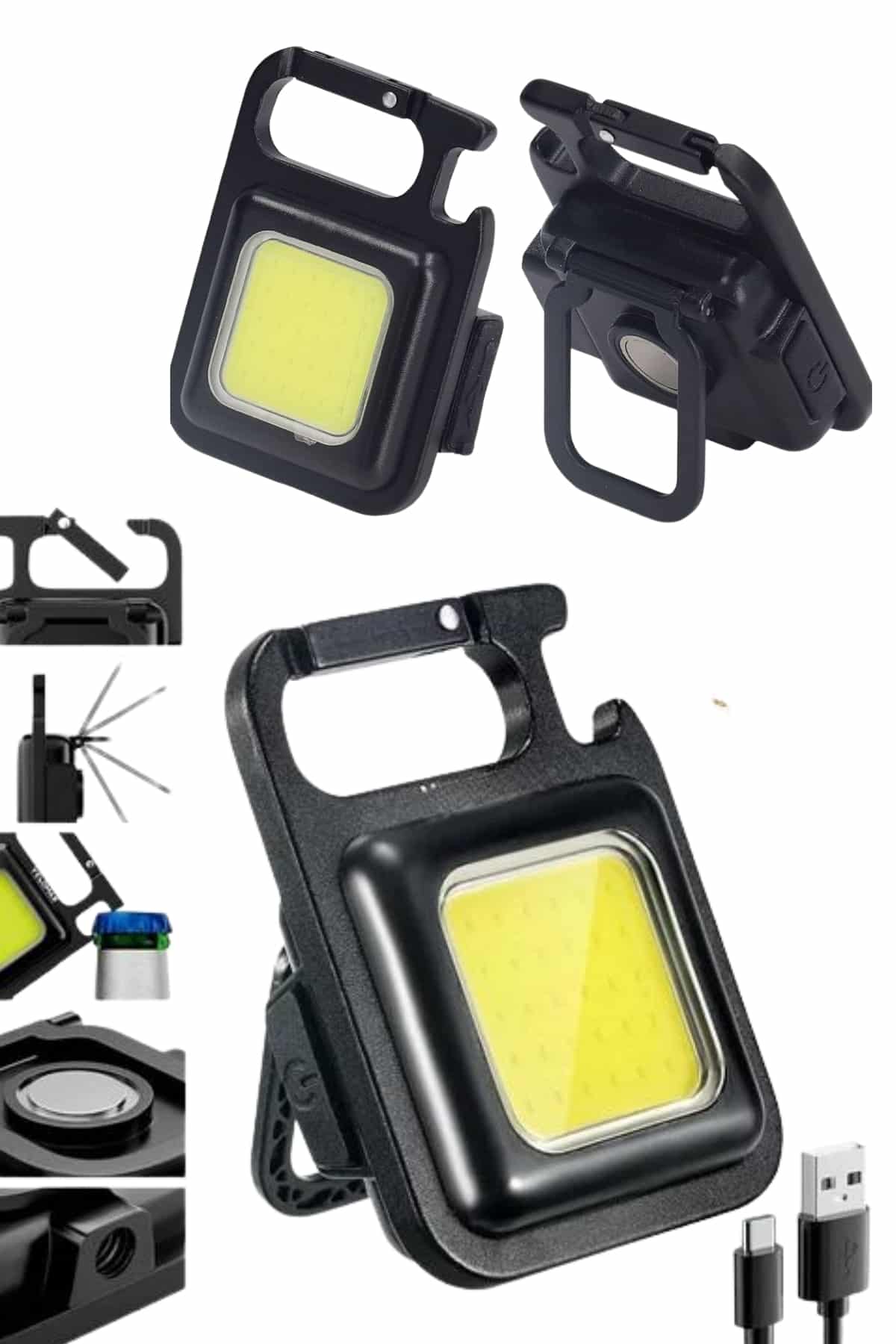 Kamp Çadır Lambası Şarjlı El Feneri Işıldak Anahtarlık Mini Mıknatıslı