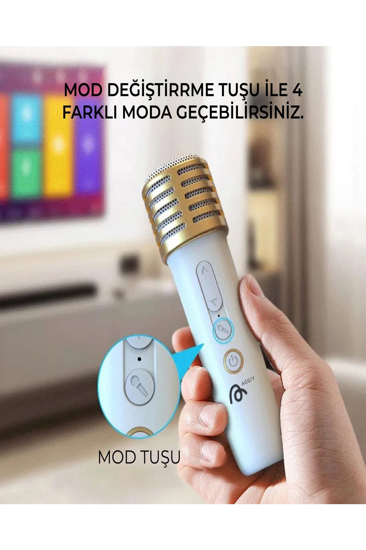 Karaoke Bluetooth Hoparlör Aggıy Ag-s7 Kablosuz Mikrofonlu Rgb Led Parti Işıklı