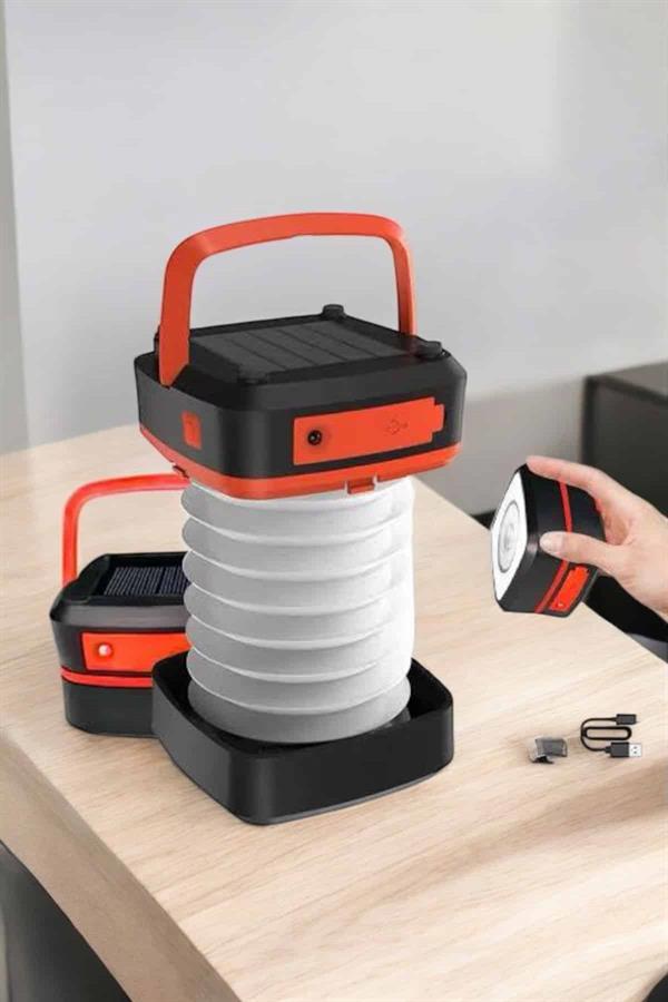 Katlanabilir Kamp Lambası Solar Fener Görünümlü 3 Kademeli Şarjlı