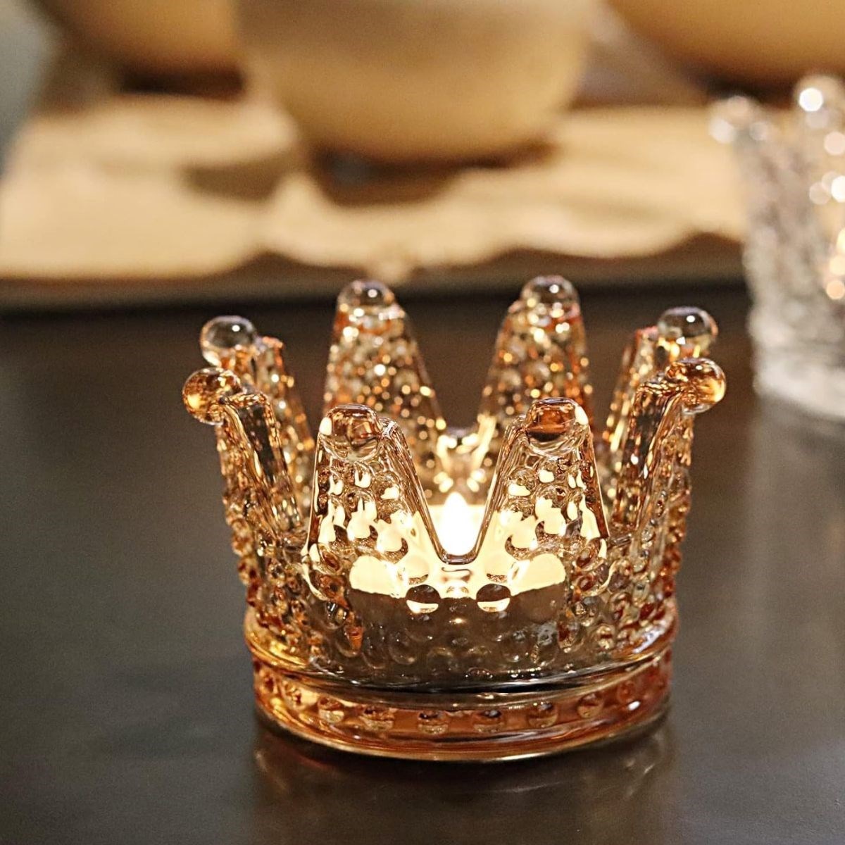 ???? Kral Tacı Model Mini Mumluk, Küllük, Lokumluk – Çok Amaçlı Şeffaf Bronz Kase