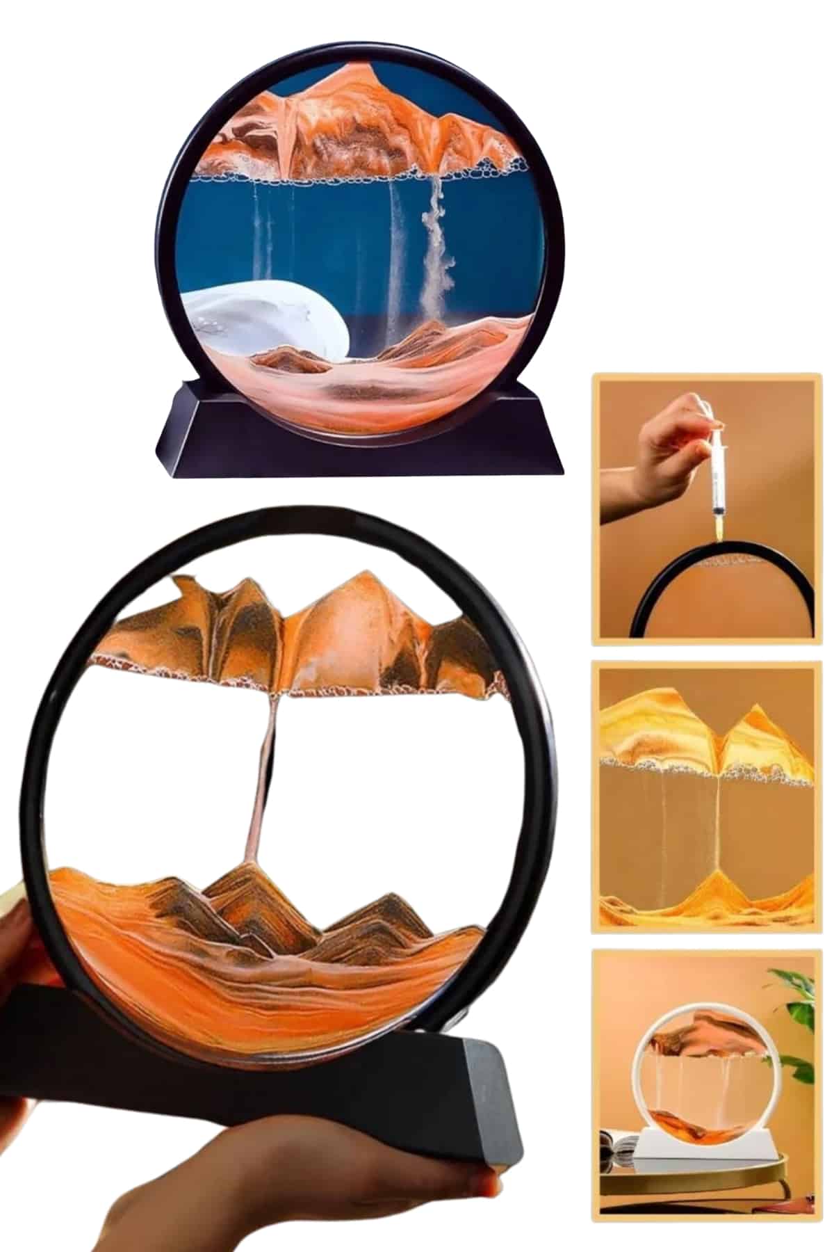 Kum Saati Yuvarlak Şık Kum Tablosu Dekoratif Kum Sulu Kum Saati