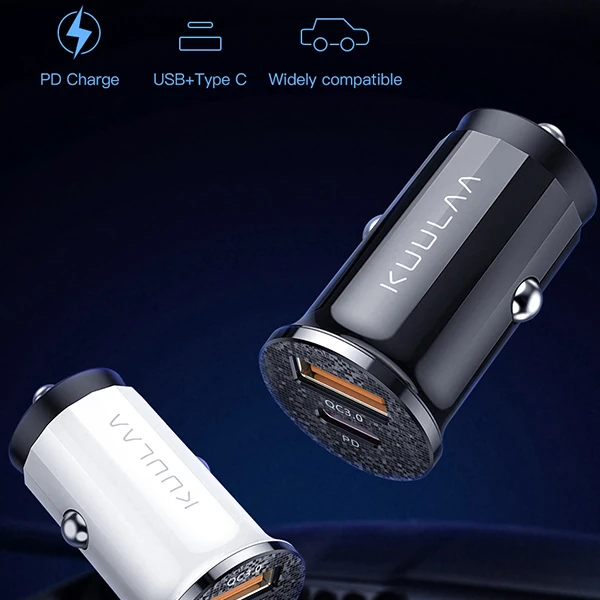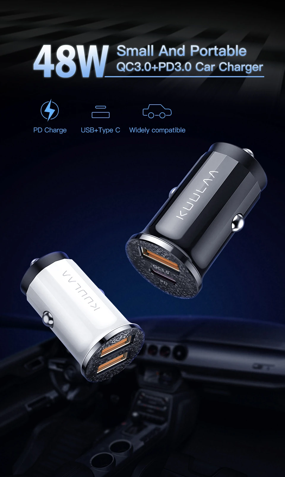 KUULAA 48W USB + Type-C Çift Çıkışlı Mini Hızlı Araç Şarj Cihazı