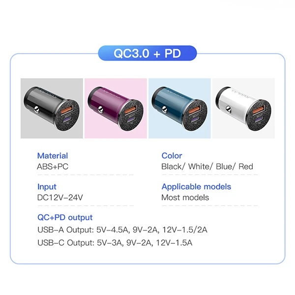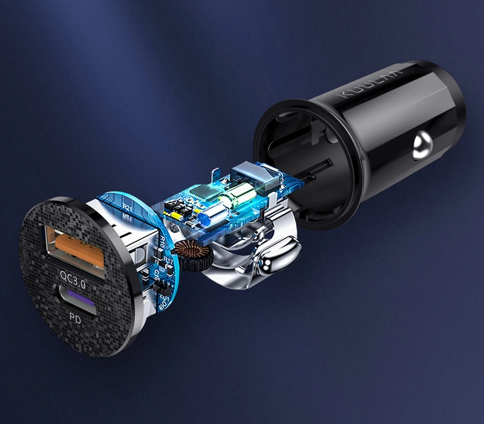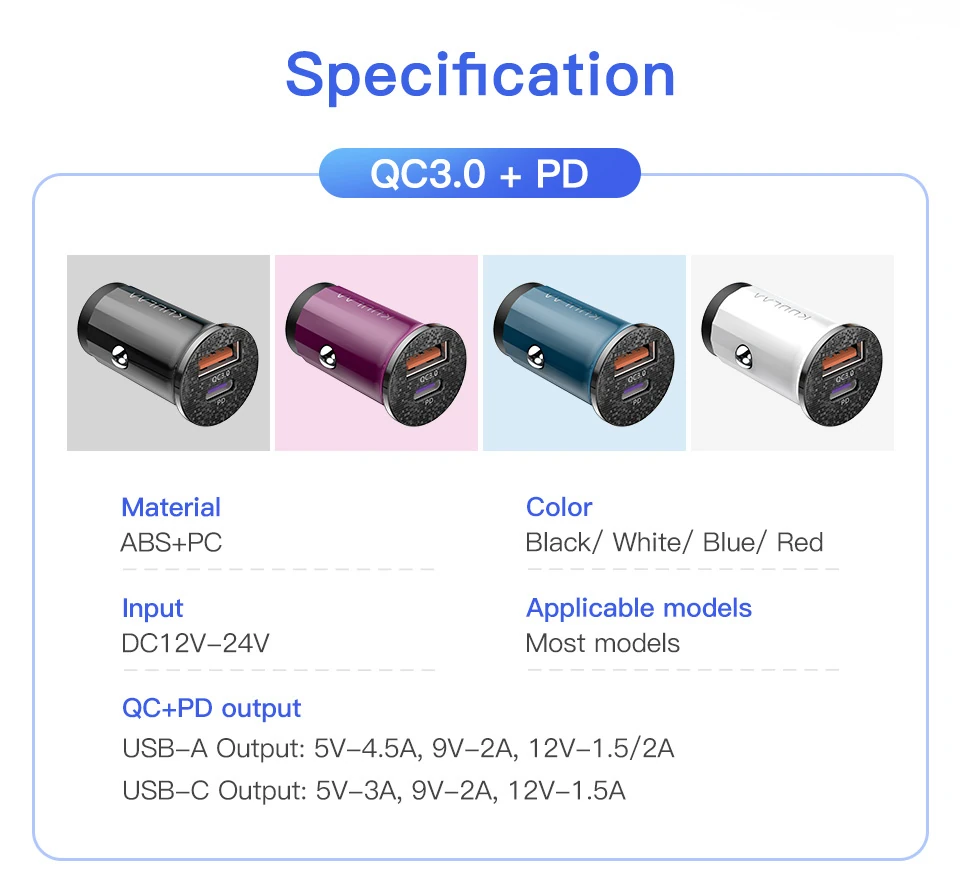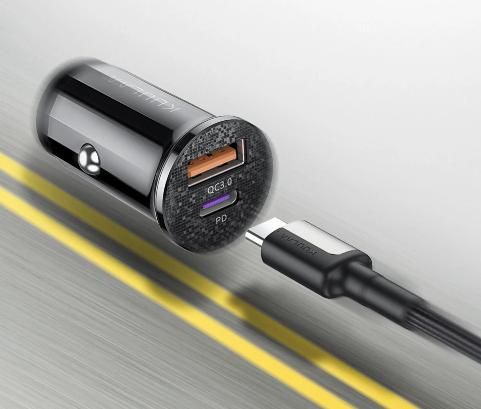KUULAA 42W USB + Type-C Çift Çıkışlı Mini Hızlı Araç Şarj Cihazı-(5775)