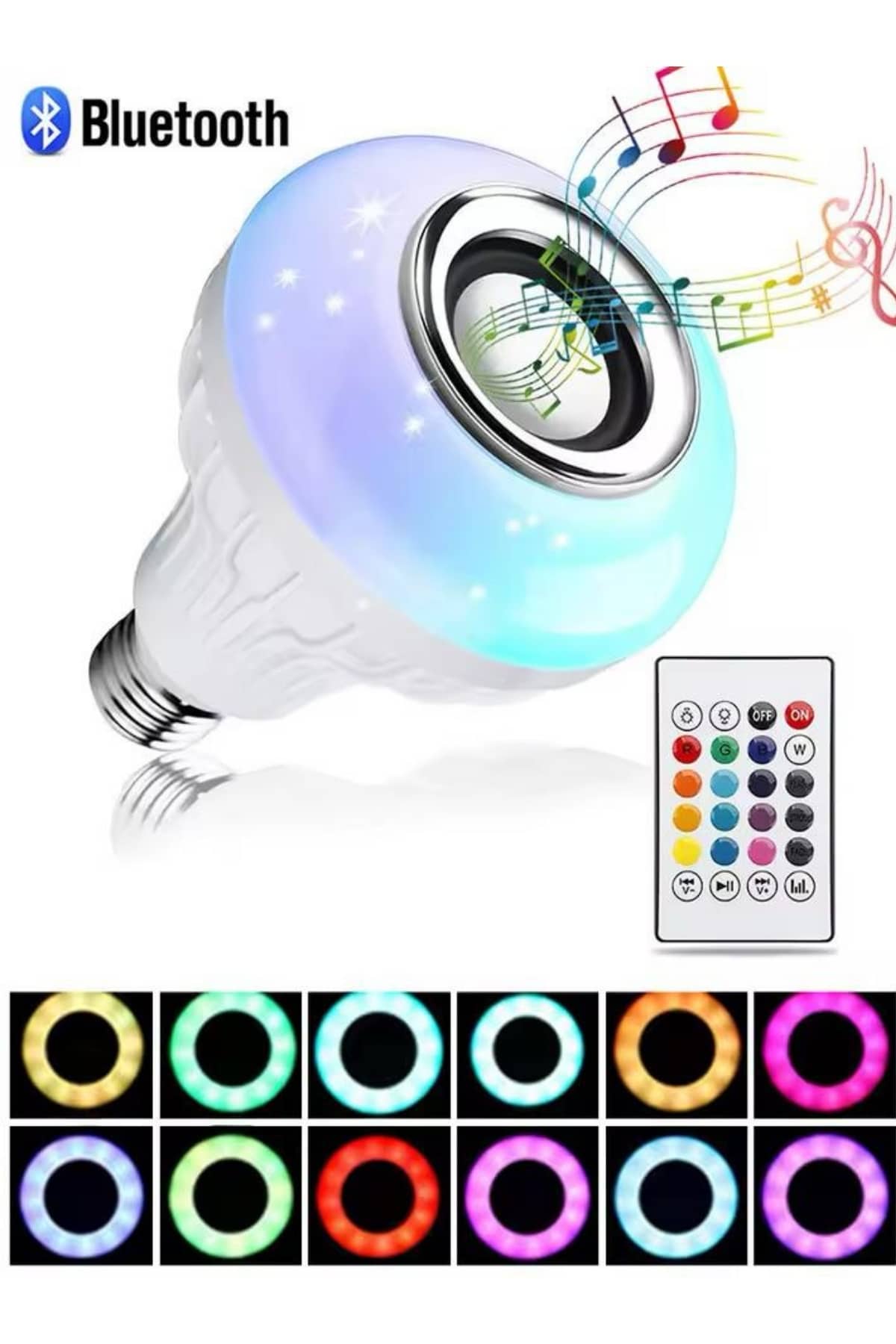 Bu Bluetooth özellikli akıllı LED ampul, hem aydınlatma hem de müzik deneyiminizi bir üst seviyeye taşıyan çok yönlü bir üründür. Beyaz renkte tasarlanmış olan lamba, RGB renk seçenekleriyle farklı ışık tonlarında ortam aydınlatması sağlar. 7 farklı ışık rengi ile odanızı kişisel zevkinize göre renklendirebilir, kumanda aracılığıyla istediğiniz ışık tonunu seçebilirsiniz. Geleneksel beyaz veya sarı ışığın ötesine geçerek ortama farklı bir atmosfer kazandırabilirsiniz. Gece lambası olarak kullanılabilen bu ampul, kademeli renk değiştirme fonksiyonu ile ortama hoş bir ambiyans katar. Parlak gün ışığı aydınlatması sayesinde yalnızca evlerde değil, iş yerleri, vitrinler, oteller, showroom'lar ve dekoratif aydınlatma gerektiren her alanda ideal bir kullanım sunar.