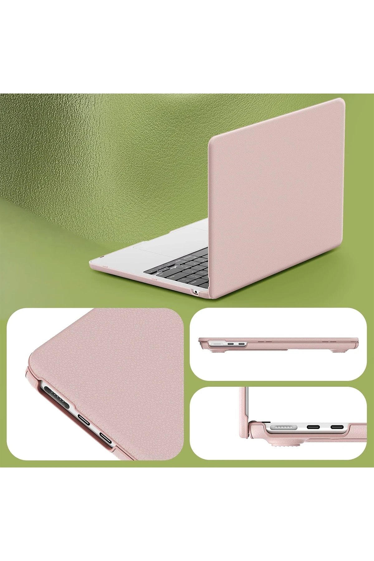 Macbook Air 15 2024 Macbook Deri Kapak - Pembe-(5796)
