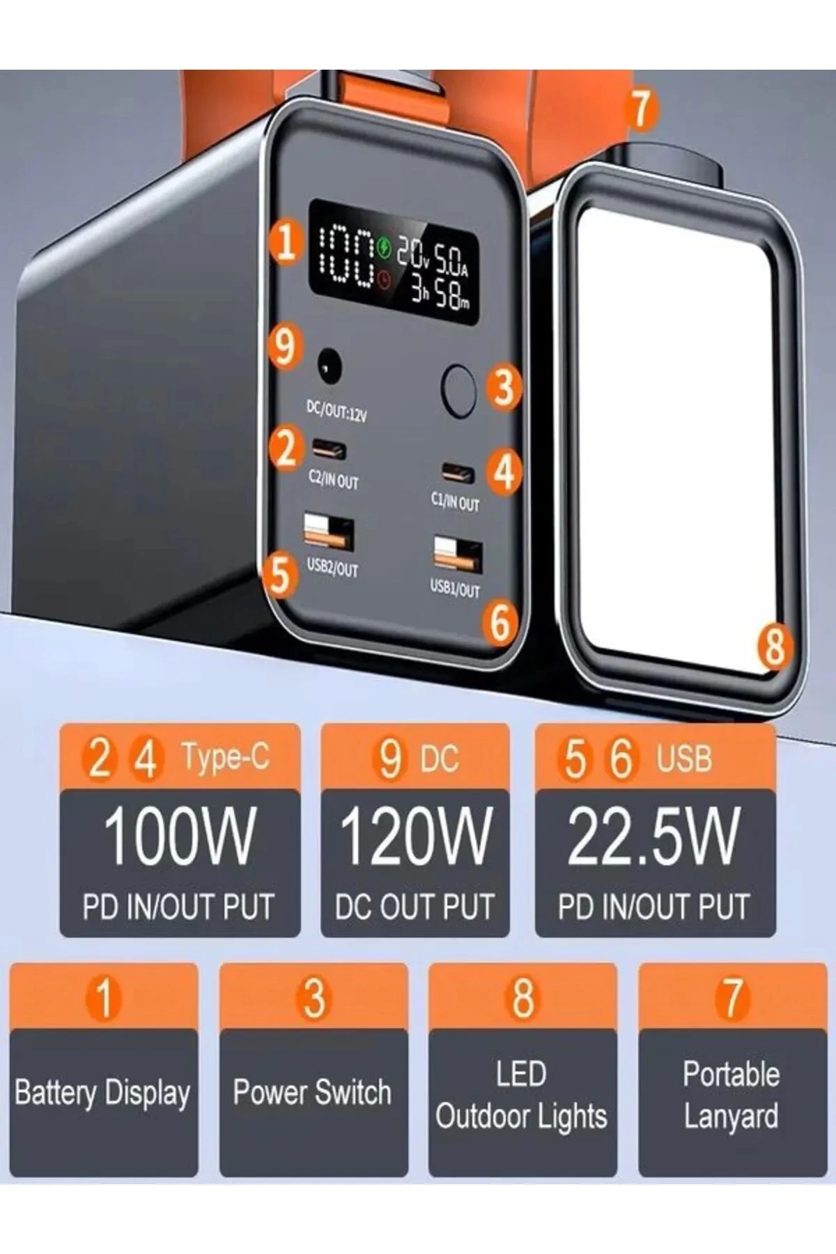 Mini Taşınabilir El Fener Pd100w Destekli 30.000 Mah Powerbank Hızlı Şarj Destekli