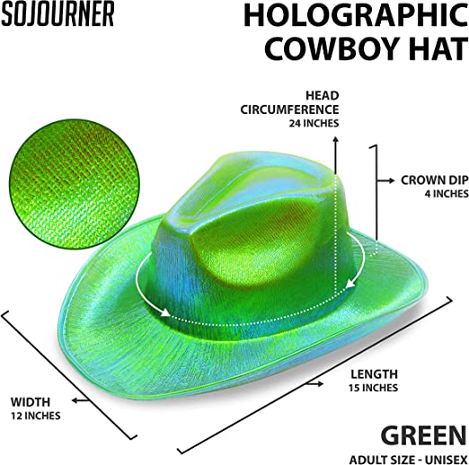 Neon Hologramlı Kovboy Model Parti Şapkası Yeşil Yetişkin 39X36X14 cm (4767)
