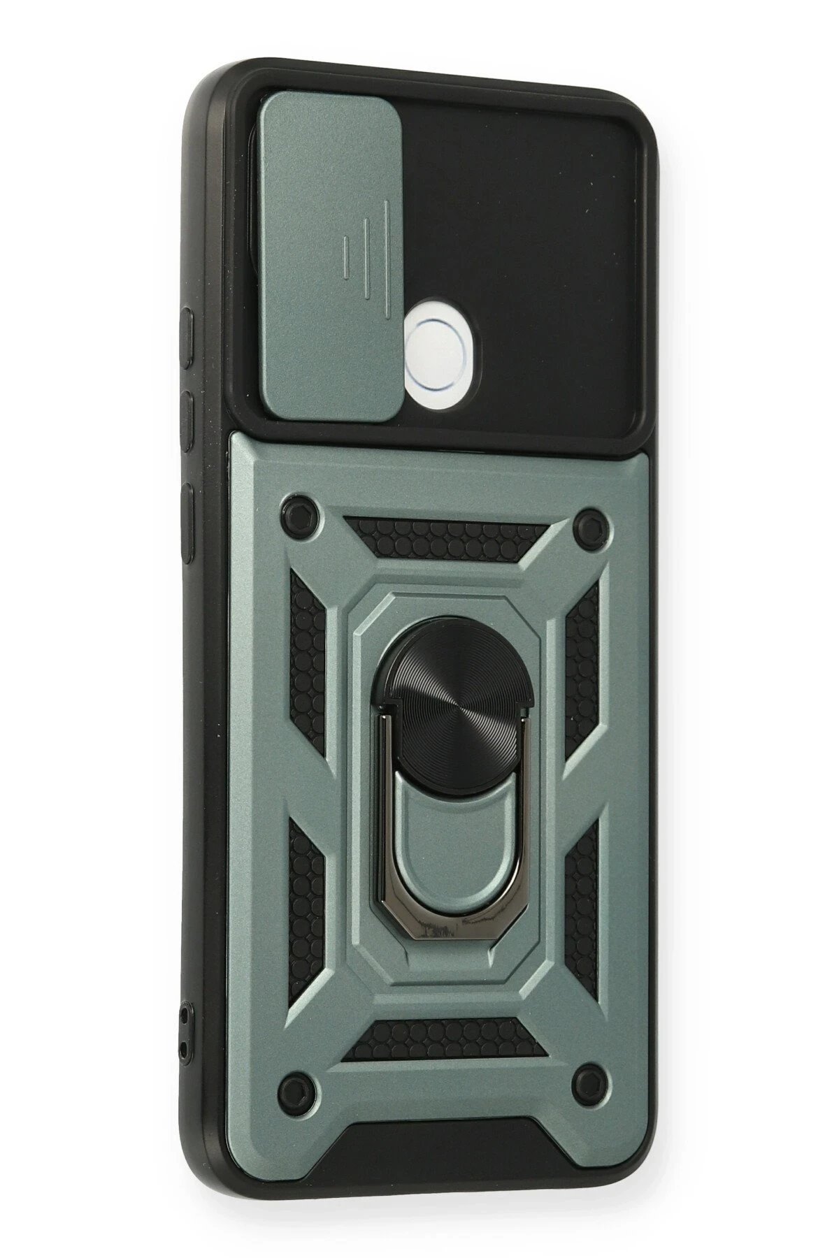 Oppo A15 Kılıf Pars Lens Yüzüklü Silikon - Yeşil-(5796)