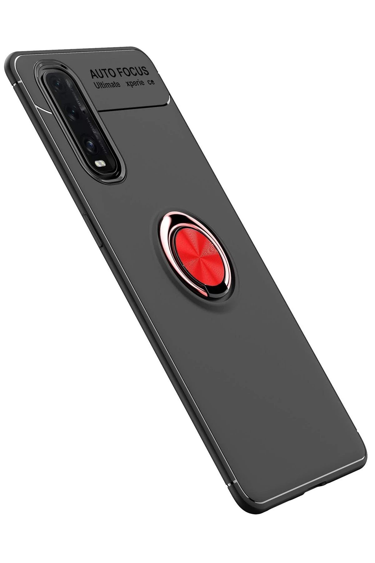 Oppo Find X2 Kılıf Range Yüzüklü Silikon - Siyah-Kırmızı-(5796)