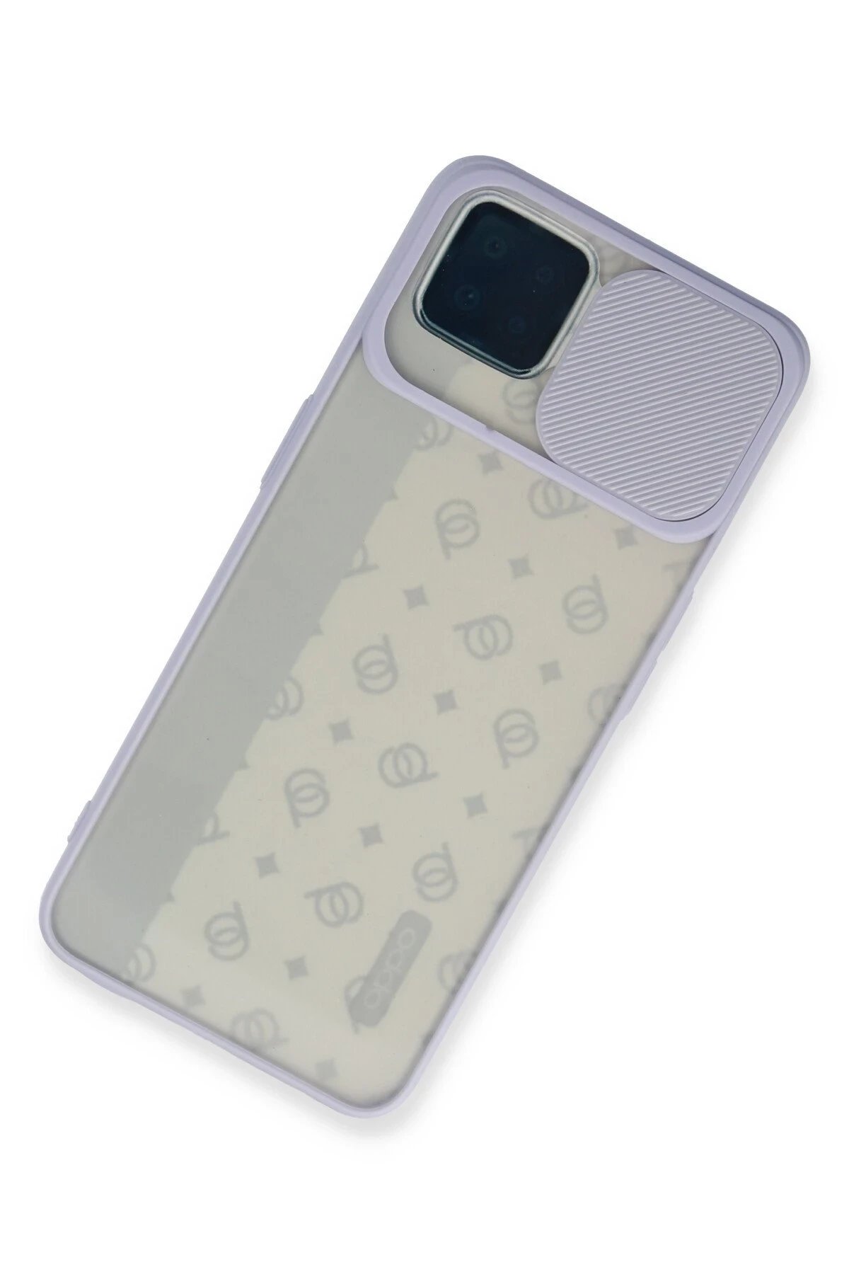 Oppo Reno 4 Lite Kılıf Palm Buzlu Kamera Sürgülü Silikon - Lila-(5796)