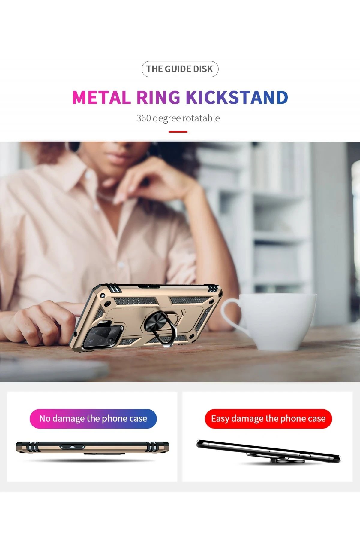 Oppo Reno 5 Lite Kılıf Sofya Yüzüklü Silikon Kapak - Gold-(5796)
