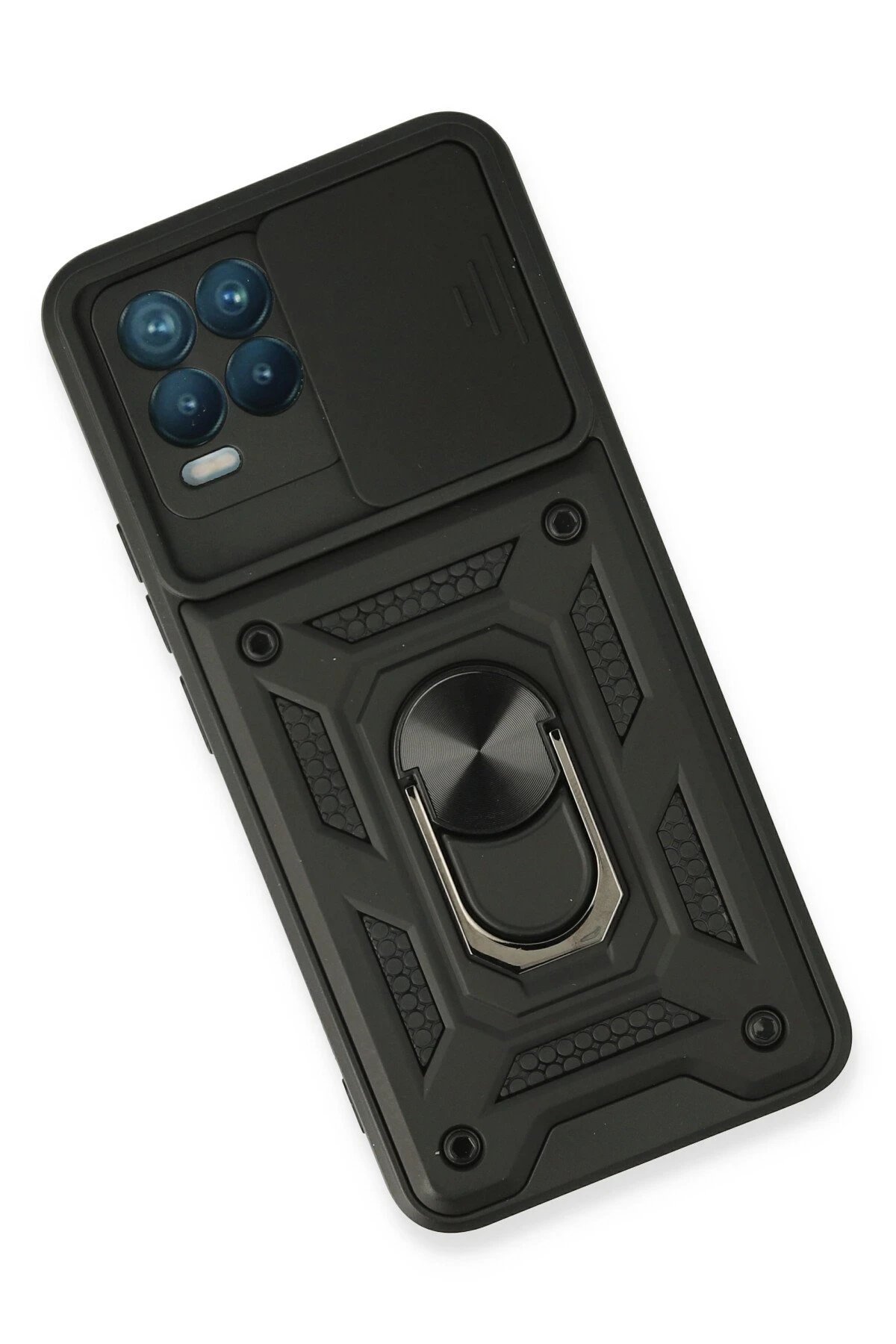 Realme 8 Kılıf Pars Lens Yüzüklü Silikon - Siyah-(5796)