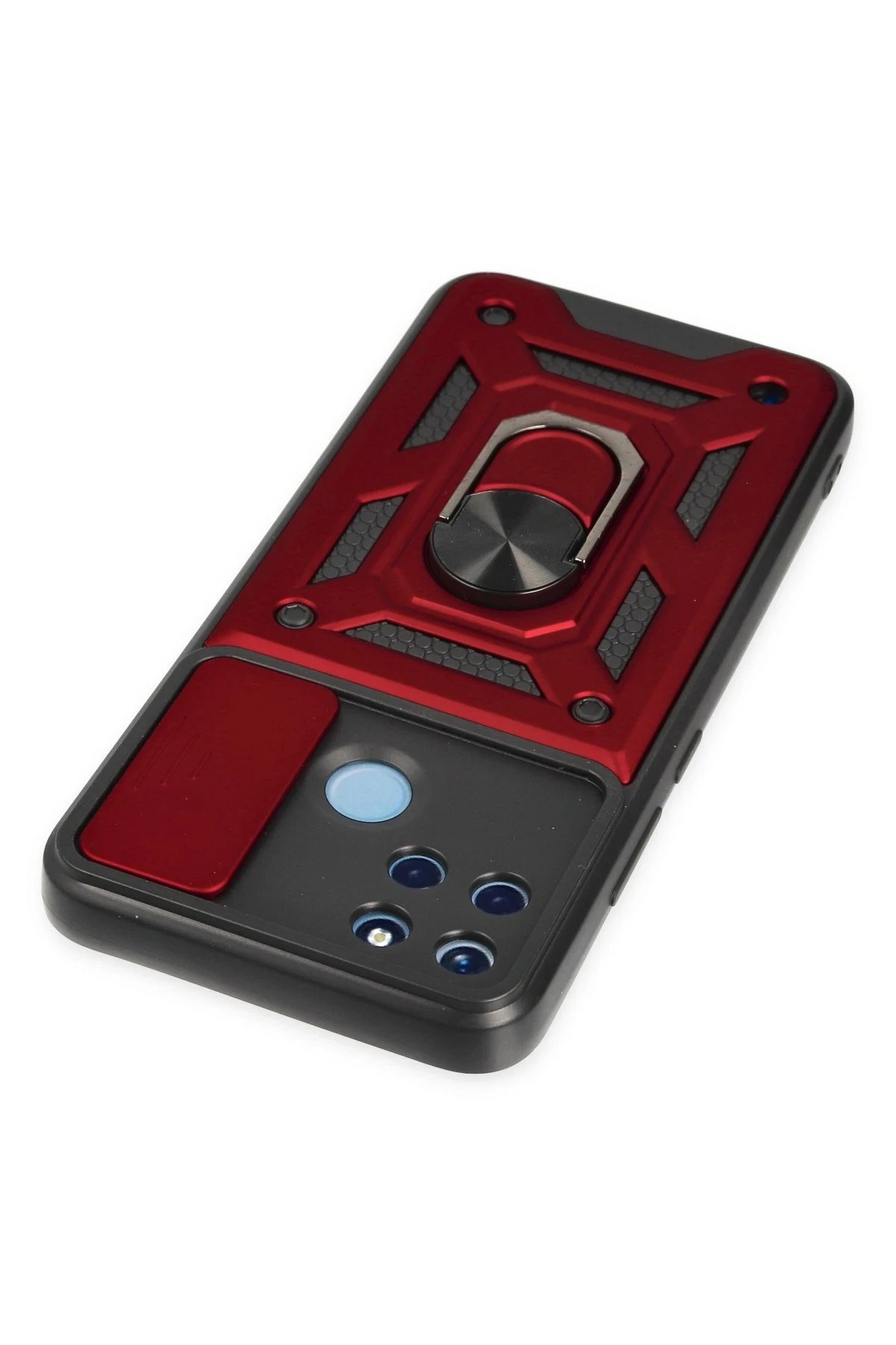 Realme C25Y Kılıf Pars Lens Yüzüklü Silikon - Kırmızı-(5796)