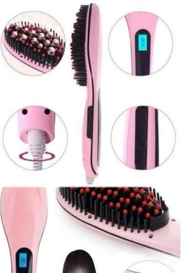 Elektrikli Saç Düzleştirici Tarak – LCD Ekranlı Dijital Şekillendirici FırçaSaçlarınıza zarar vermeden profesyonel düzleştirme sonuçları almak istiyorsanız, bu elektrikli saç düzleştirici tarak tam size göre. Kullanımı kolay, güvenli ve etkili bir ürün olan bu tarak, her türlü saç tipine uygun sonuçlar sağlar. Hem erkekler hem de kadınlar için ideal olan bu fırça, salon kalitesinde düzleştirme işlemi sunar.Özellikler: 230°C'ye Kadar Isıtma Kapasitesi: Bu saç düzleştirici, maksimum ısı kapasitesi ile 230°C'ye kadar ısınır. Yüksek sıcaklık, saçı hızlı ve etkili şekilde düzleştirirken, seramik kaplama sayesinde saçı ısıtarak zarar vermeden istediğiniz sonuca ulaşmanızı sağlar. Dijital Ekran ile Kolay Sıcaklık Kontrolü: Dijital LCD ekranı sayesinde, sıcaklık seviyelerini net bir şekilde görebilir ve istediğiniz düzleştirme sıcaklığını kolayca ayarlayabilirsiniz. Bu sayede kişisel tercihinize göre en uygun sıcaklığı seçerek, daha konforlu bir deneyim yaşayabilirsiniz. Otomatik Kapanma Özelliği: Güvenliği ön planda tutarak, ürün kullanıldıktan bir süre sonra otomatik kapanma fonksiyonu devreye girer. Bu özellik, hem güvenliği artırır hem de enerji tasarrufu sağlar. Fırça Tipi Tasarım: Fırça tipi tasarımı, saçlarınıza nazikçe dokunarak düzleştirme işlemini gerçekleştirirken, rahat ve konforlu bir kullanım deneyimi sunar. Saçınıza zarar vermeden işlemi tamamlar, böylece daha sağlıklı sonuçlar elde edersiniz. Plastik Plaka Materyali: Plastik plaka yapısı sayesinde cihazın hafifliği ve kolay temizlenmesi sağlanır. Bu da uzun vadede pratik kullanım sunar ve taşıma kolaylığı sağlar.Teknik Özellikler: Maksimum Sıcaklık: 230°C Dijital LCD Ekran: Sıcaklık ayarları kolayca kontrol edilebilir. Otomatik Kapanma: Güvenlik ve enerji tasarrufu için otomatik kapanma fonksiyonu. Plaka Materyali: Hafif plastik malzeme, kolay kullanım ve temizleme imkanı sunar. Kullanım Tipi: Saç düzleştirici tarak, nazik dokunuşla düzleştirme sağlar.Bu elektrikli saç düzleştirici tarak, profesyonel düzleştirme sonuçları elde etmek isteyenler için mükemmel bir tercihtir. Güvenli, konforlu ve etkili bir saç şekillendirme deneyimi sunar.