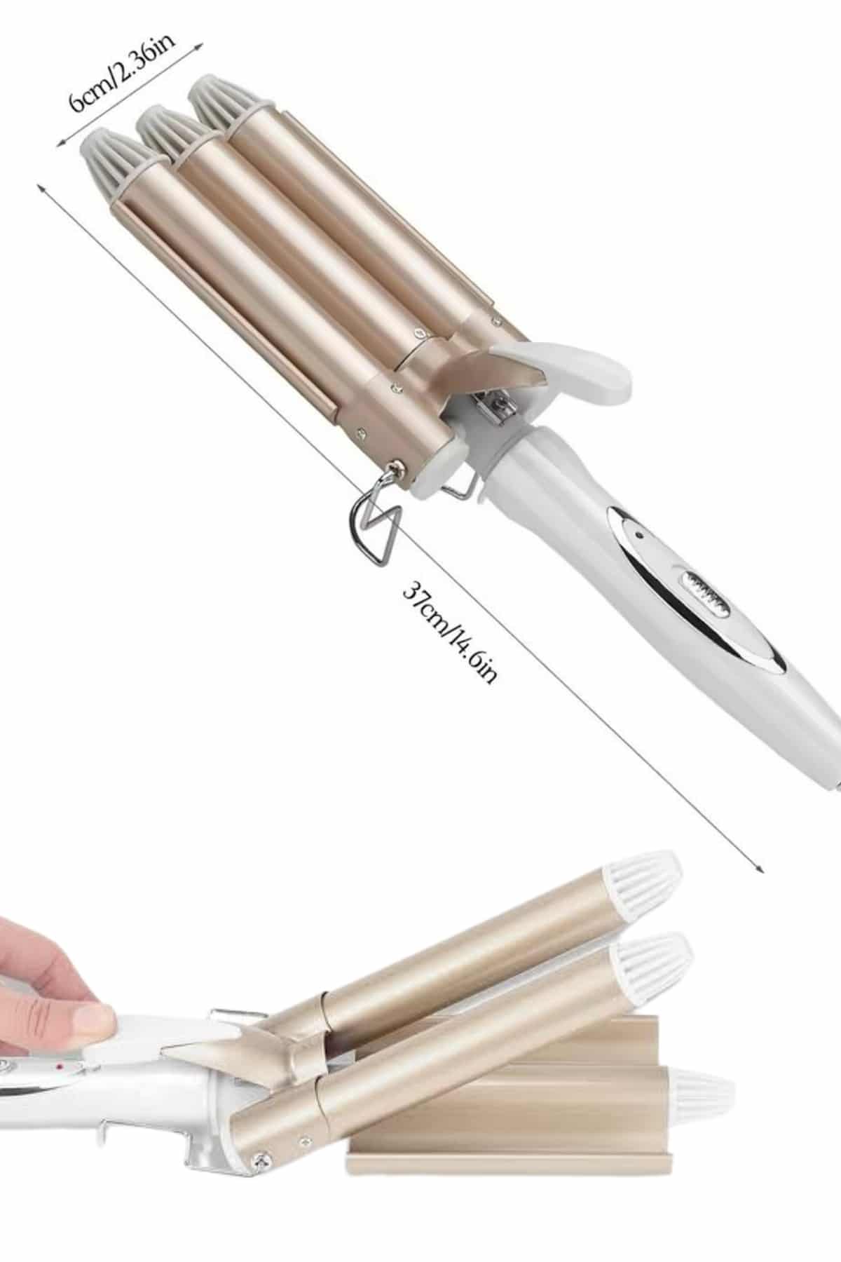 Profesyonel seramik wag su dalgası saç maşası, saçlarınıza doğal ve kalıcı dalgalar kazandırmak için özel olarak tasarlanmıştır. 25 mm çapındaki üçlü fıçı sistemi, su dalgası efektini mükemmel şekilde yansıtarak hem hacimli hem de belirgin bukleler oluşturur. Orta ve uzun saçlar için ideal olan bu maşa; düğün, davet, parti ya da günlük kullanımda zarif ve dikkat çekici bir görünüm elde etmenizi sağlar. 170°C ve 220°C olmak üzere iki kademeli sıcaklık ayarı sayesinde, saç tipinize en uygun ısıyı seçebilir; ister ipeksi hafif dalgalar ister belirgin ve kalıcı bukleler yaratabilirsiniz.