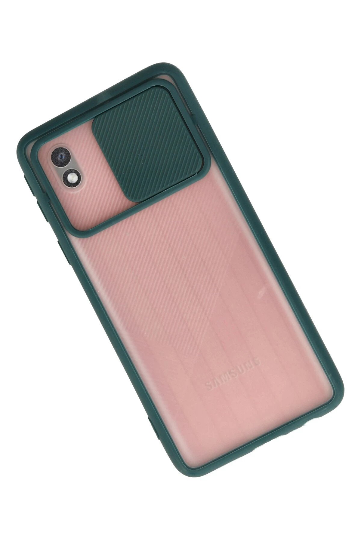 Samsung Galaxy A01 Core Kılıf Palm Buzlu Kamera Sürgülü Silikon - Yeşil-(5796)