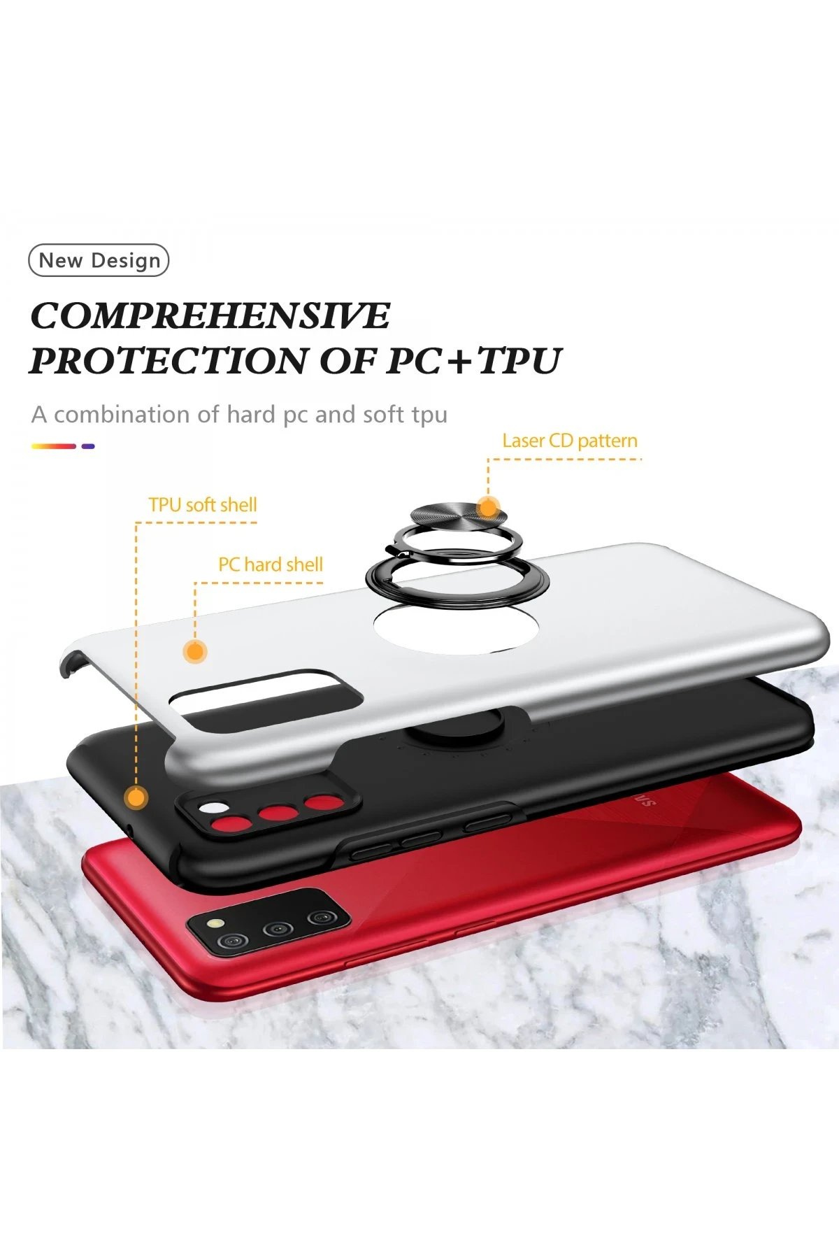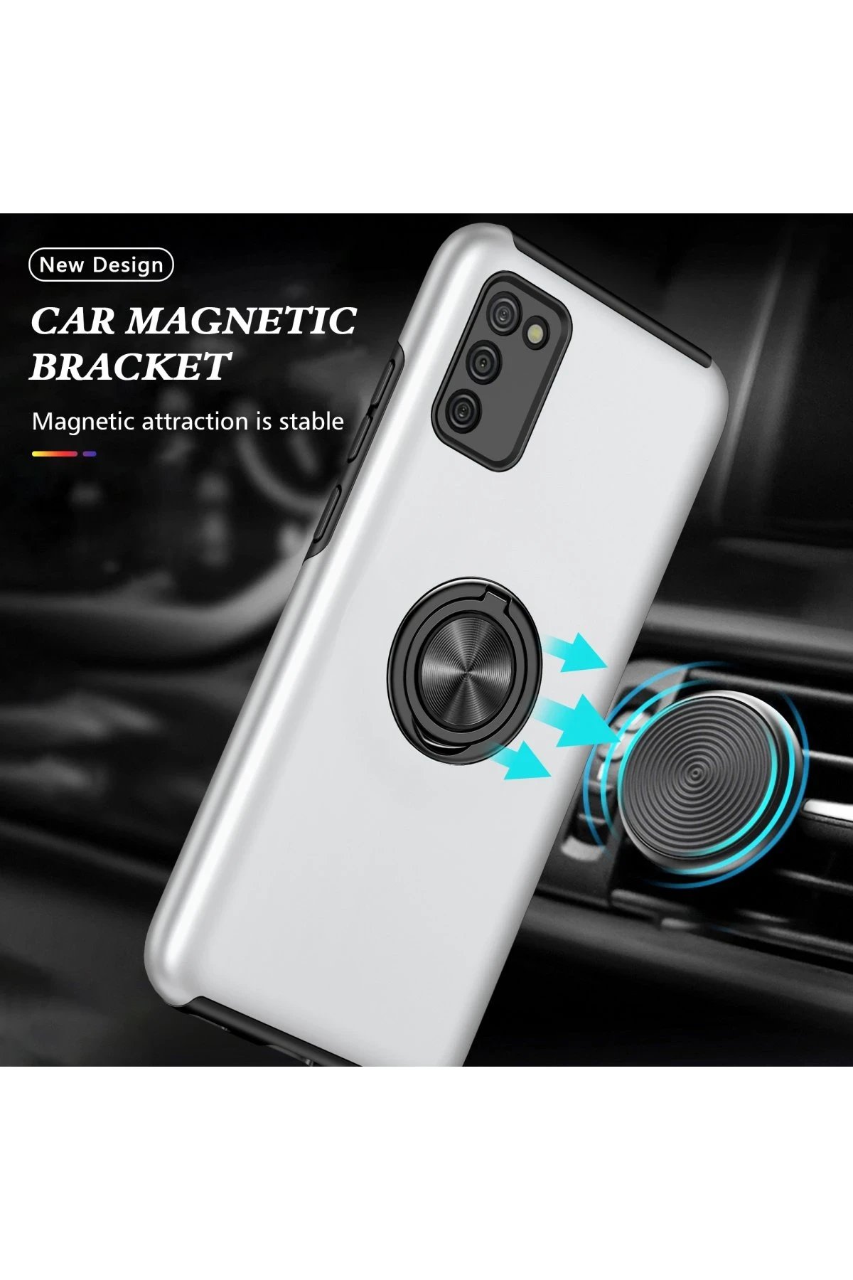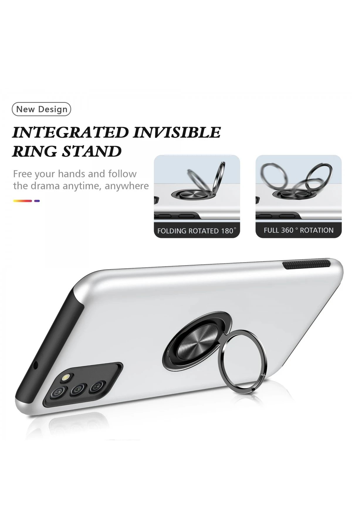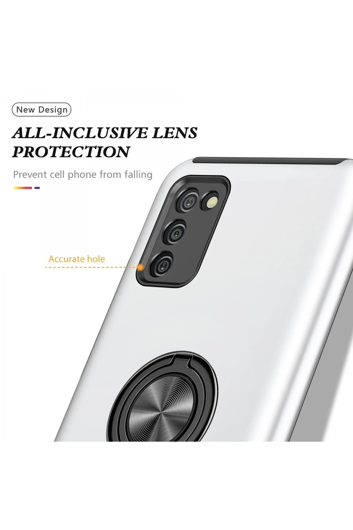 Samsung Galaxy A02S Kılıf Elit Yüzüklü Kapak - Gümüş-(5796)