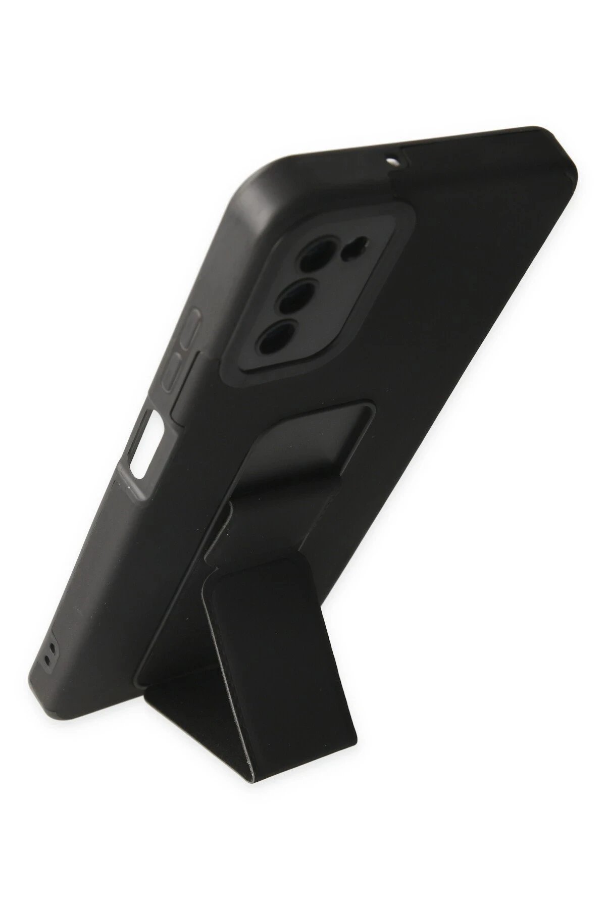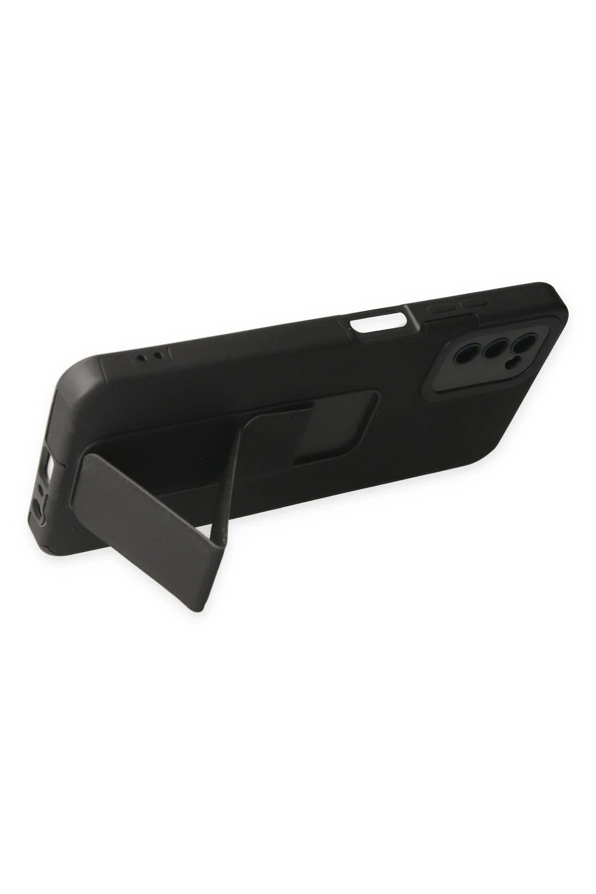 Samsung Galaxy A03S Kılıf Mega Standlı Silikon - Siyah-(5796)