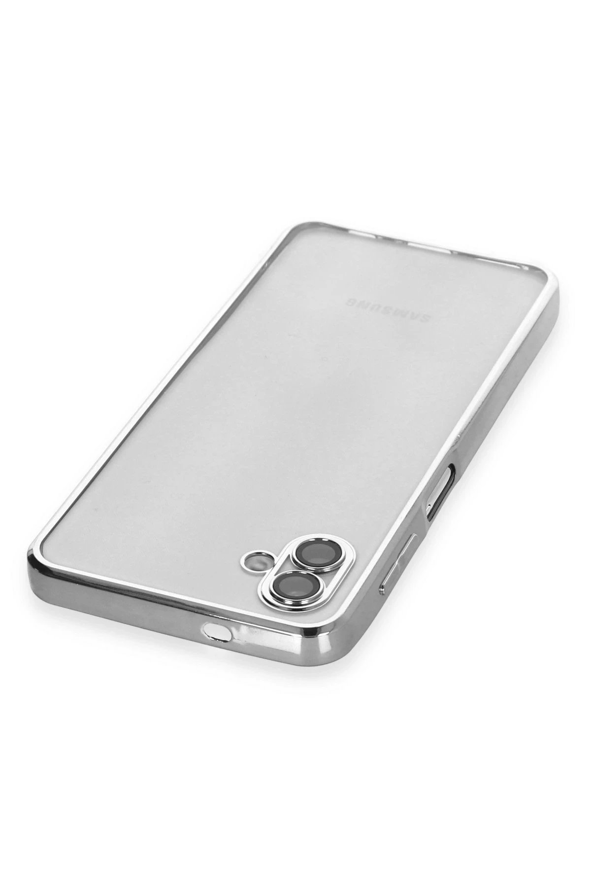 Samsung Galaxy A04 Kılıf Lensli Silikon - Gümüş-(5796)