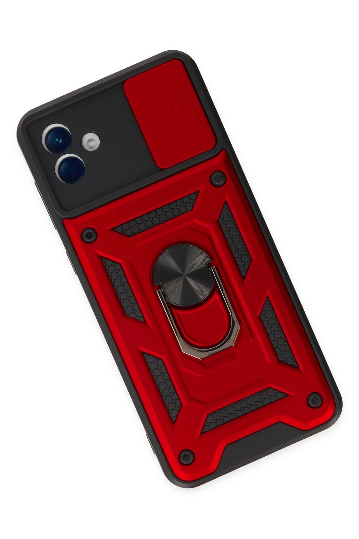 Samsung Galaxy A04 Kılıf Pars Lens Yüzüklü Silikon - Kırmızı-(5796)