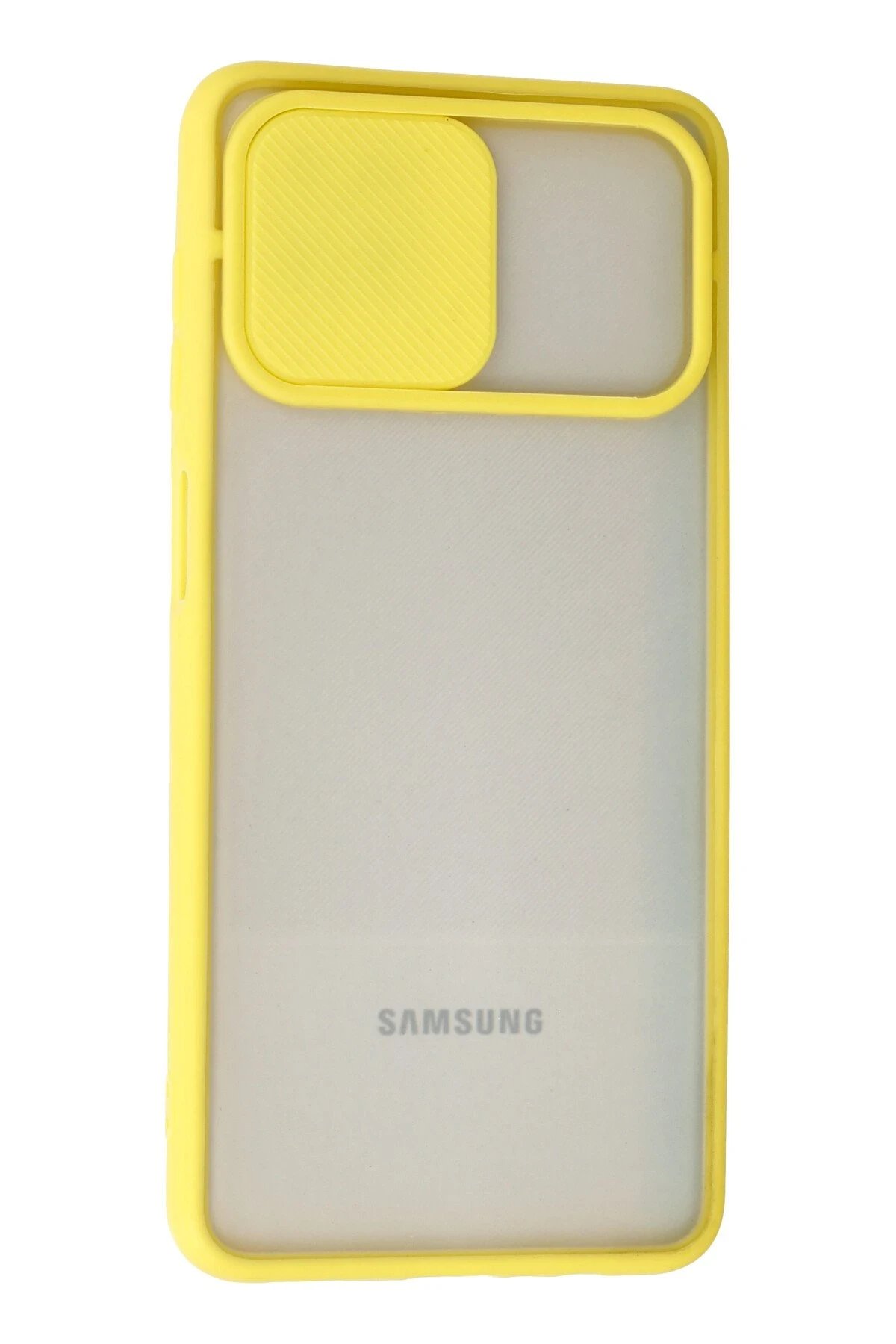 Samsung Galaxy A12 Kılıf Palm Buzlu Kamera Sürgülü Silikon - Sarı-(5796)