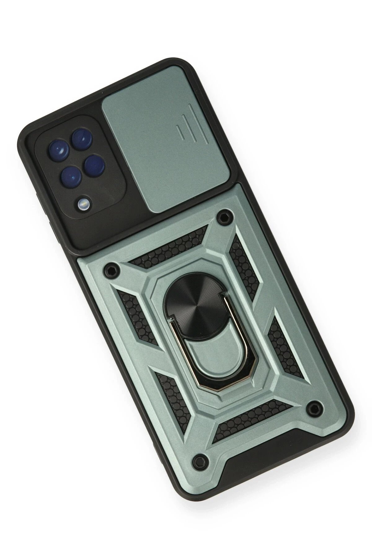 Samsung Galaxy A12 Kılıf Pars Lens Yüzüklü Silikon - Yeşil-(5796)