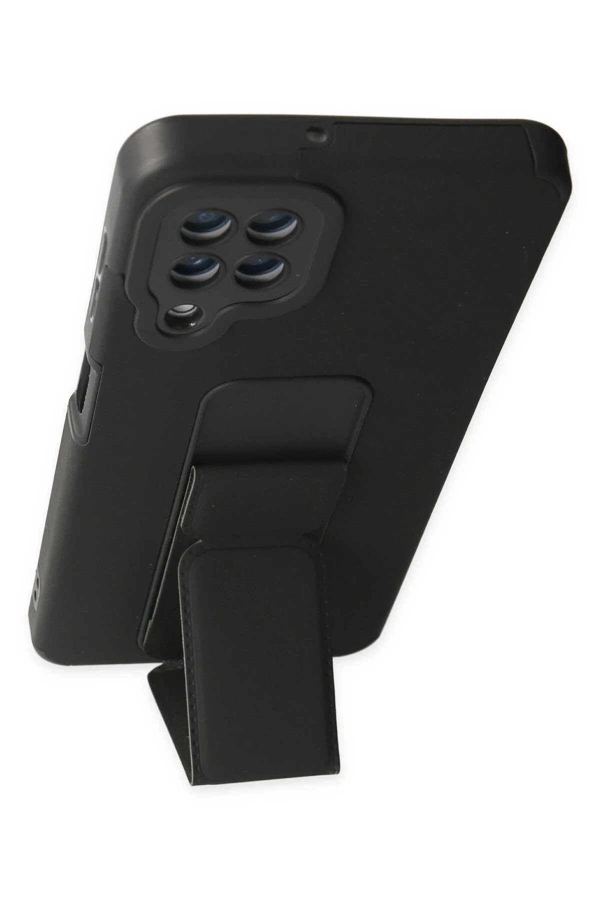 Samsung Galaxy A22 Kılıf Mega Standlı Silikon - Siyah-(5796)