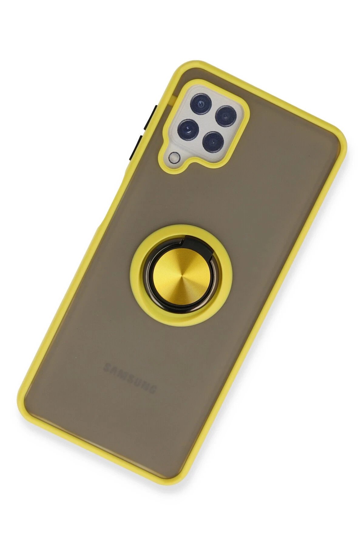 Samsung Galaxy A22 Kılıf Montreal Yüzüklü Silikon Kapak - Sarı-(5796)